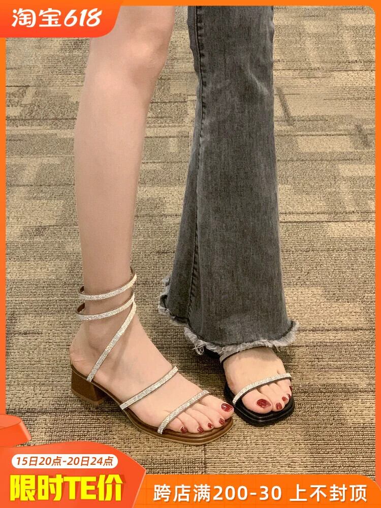 厚底ローマサンダル女性の 2023 夏の新ファッションオールマッチ妖精ラインストーンレトロ通気性ビーチシューズ潮 靴 サマー 夏物 jxjxf3003045937