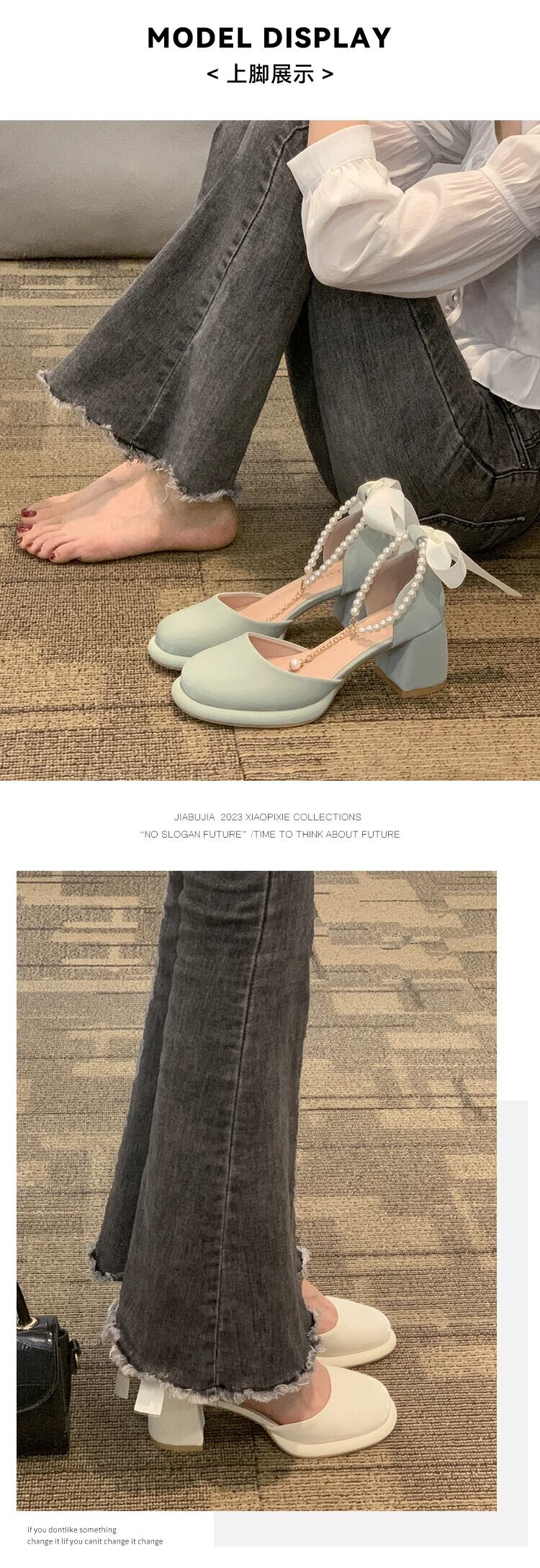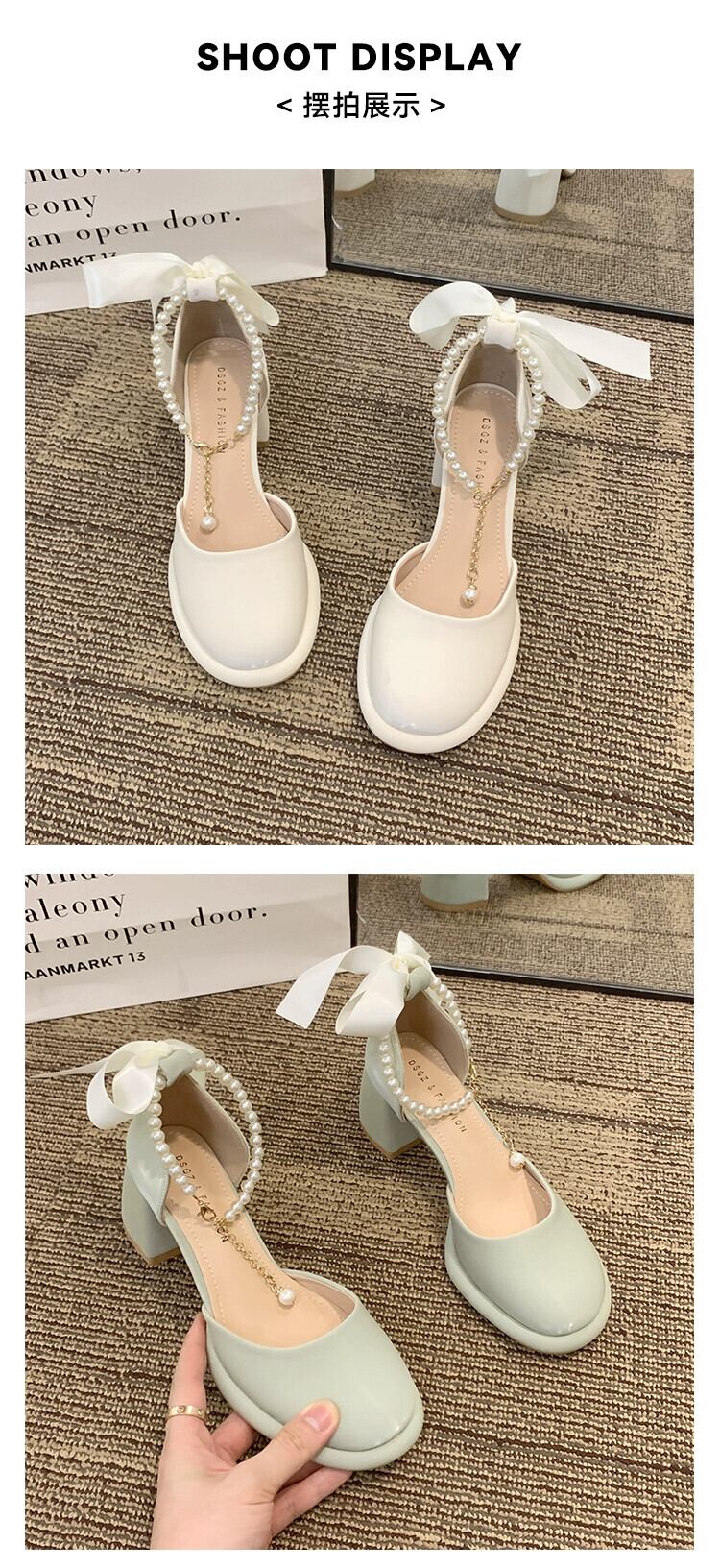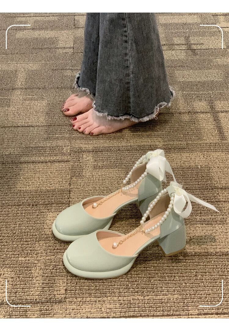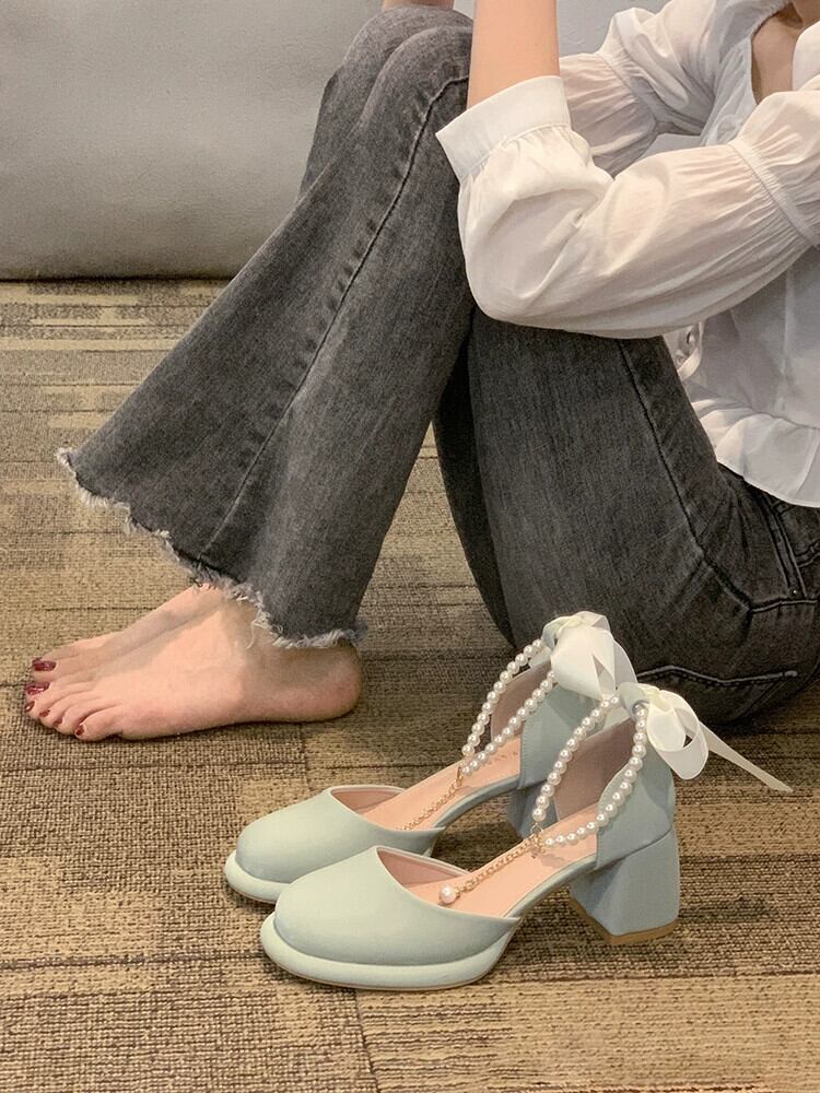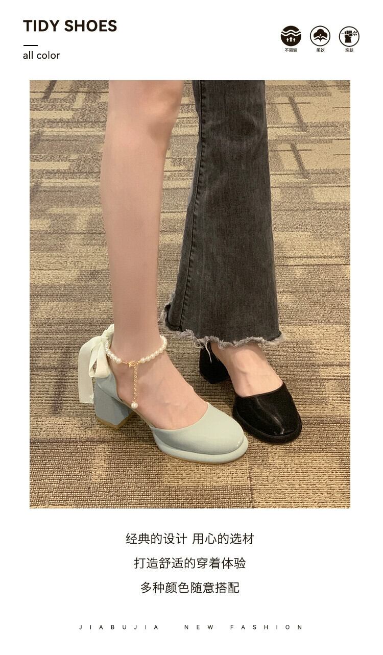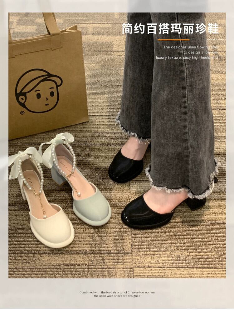 シングルシューズ女性の 2023 夏の新スーパーファッションオールマッチレトロパールハイヒールアインスタイルメリージェーンシューズ 靴 サマー 夏物 真珠 jxjxf95952332434