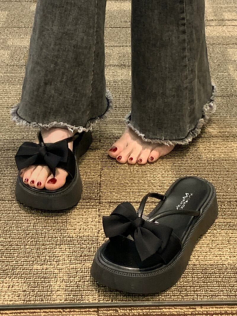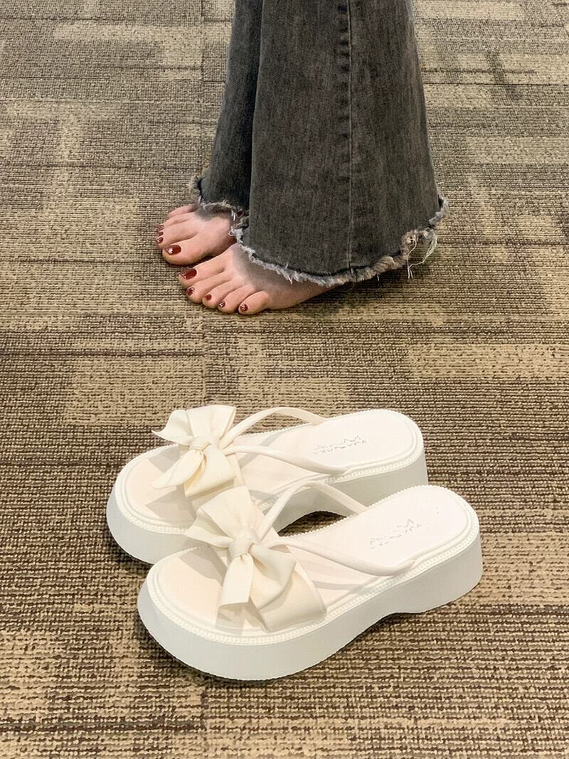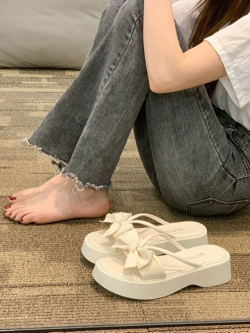 スリッパ女性のアウターウェア 2023 夏の新ファッションオールマッチ eign スタイル弓厚底滑り止め単語サンダルとスリッパ リボン ミュール 靴 シューズ サマー 夏物 jxjxf12775662322