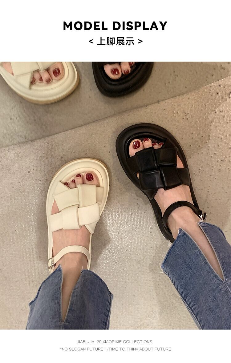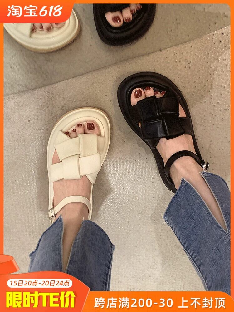 女性のサンダル 2023 夏の新ファッションオールマッチレトロシンプルな織り滑り止め厚底カジュアルビーチシューズ 靴 サマー 夏物 jxjxf20922832273