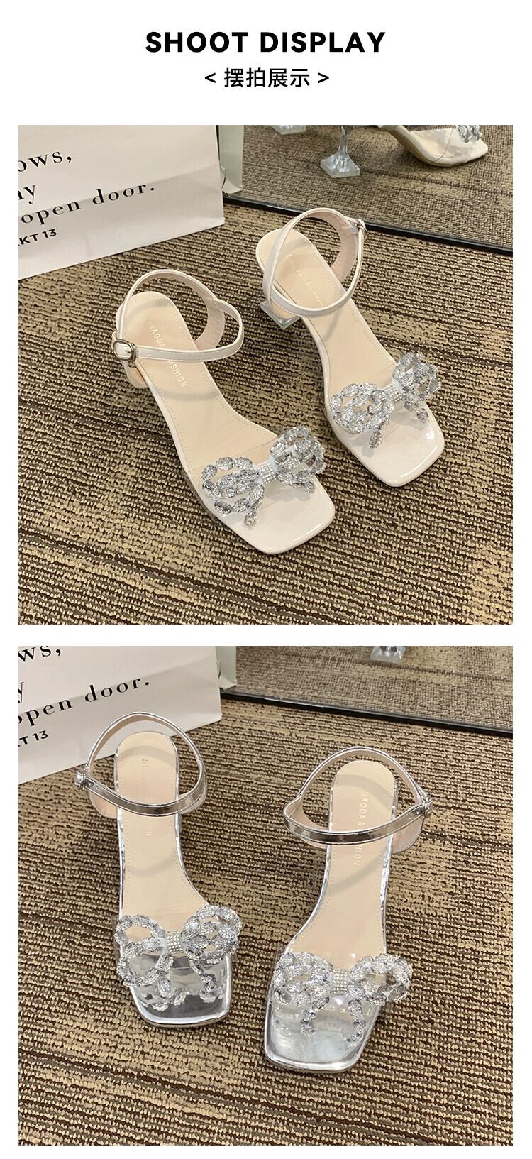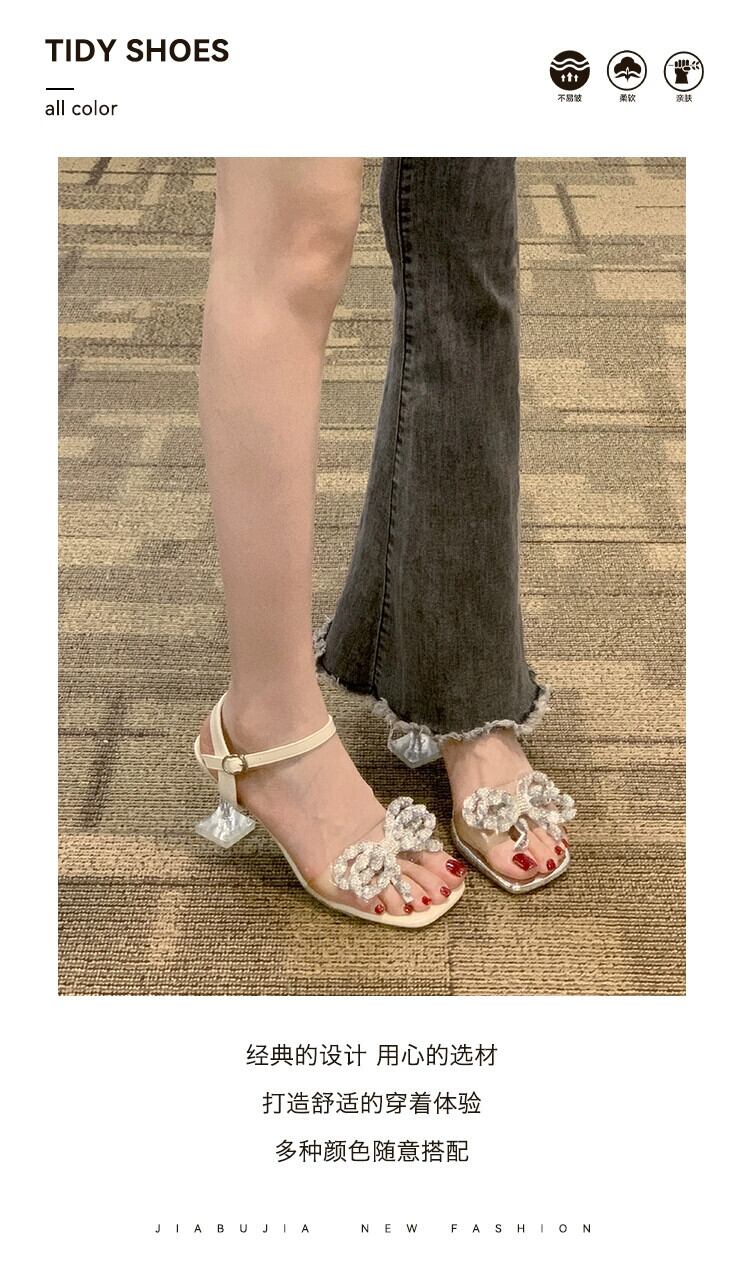 ネットレッドサンダル女性の 2023 夏の新ファッションレトロラインストーンリボン妖精風ハイヒールと一言 靴 シューズ サマー 夏物 jxjxf6920027386
