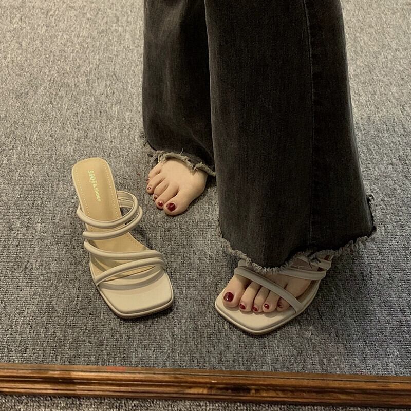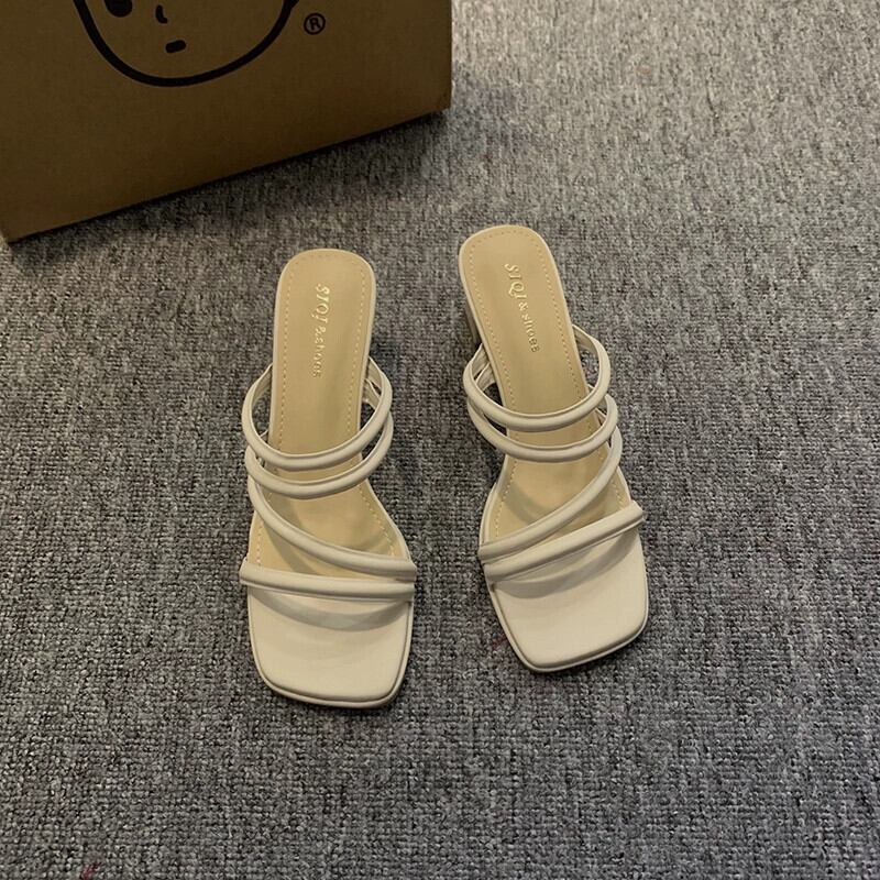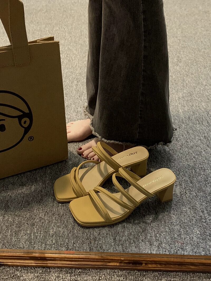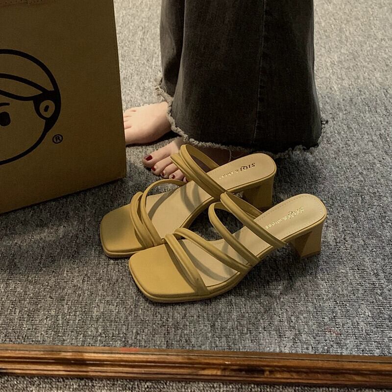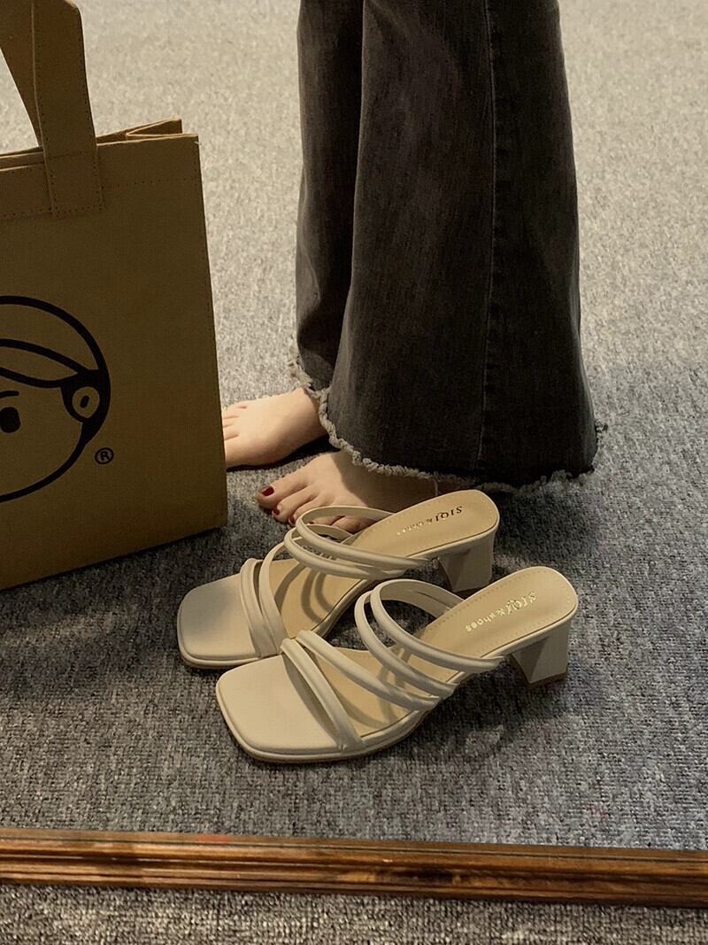 スリッパ女性の夏服 2023 新しいファッションオールマッチ優しいレトロなハイヒール滑り止め eign スタイルのクールなスリッパ 靴 シューズ ミュール サマー 夏物 jxjxf38622387789