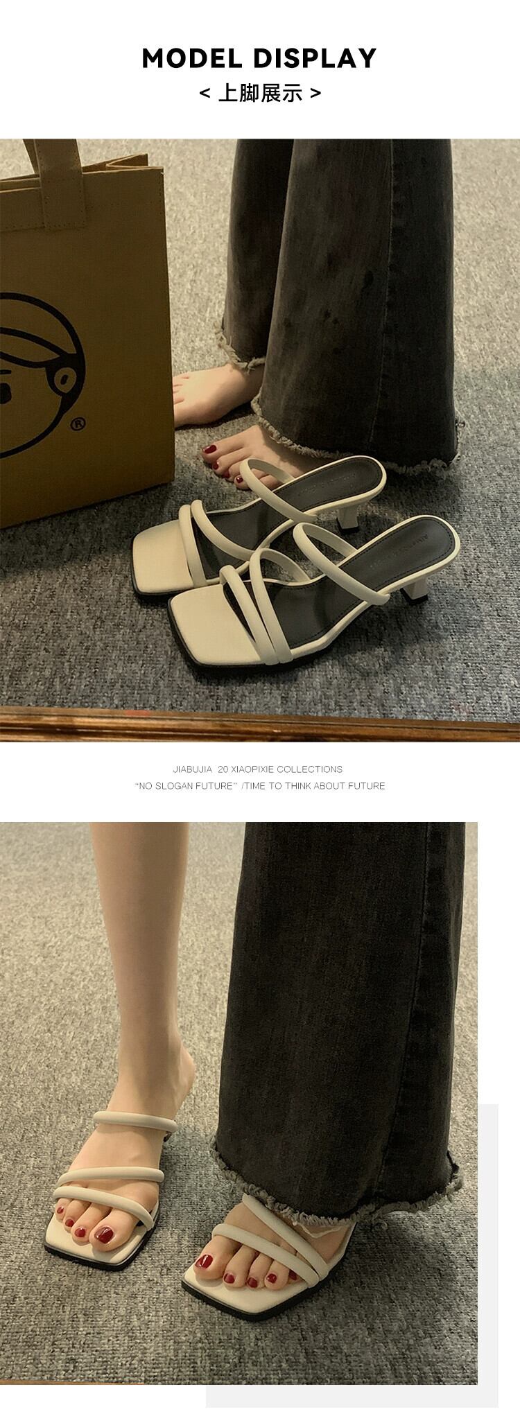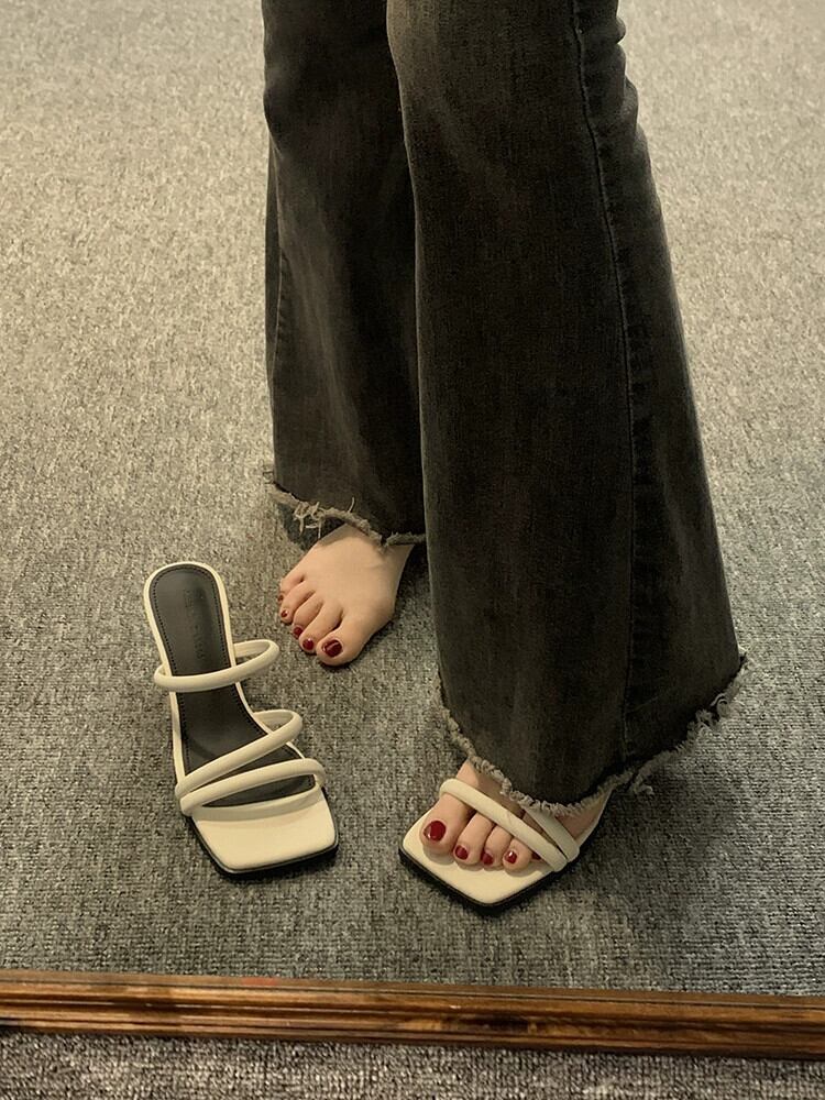 スティレットスリッパレディースアウター 2023 夏の新ファッションレトロフレンチシンプルなスクエアヘッドハイヒール 靴 シューズ サマー 夏物 スクウェア jxjxf26975331378