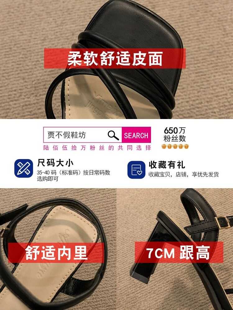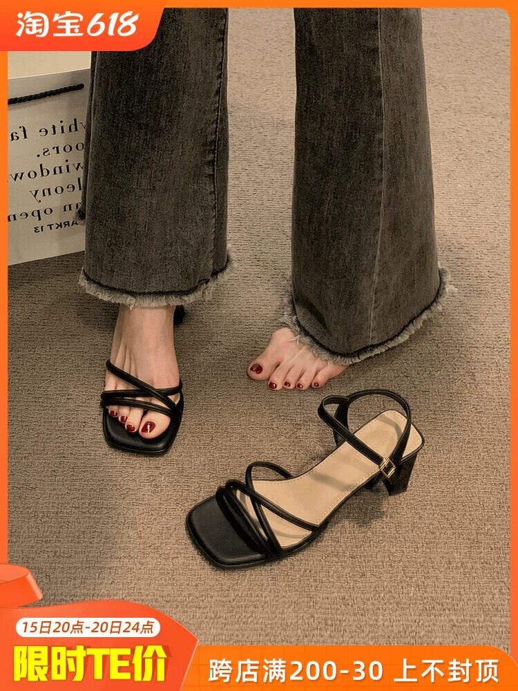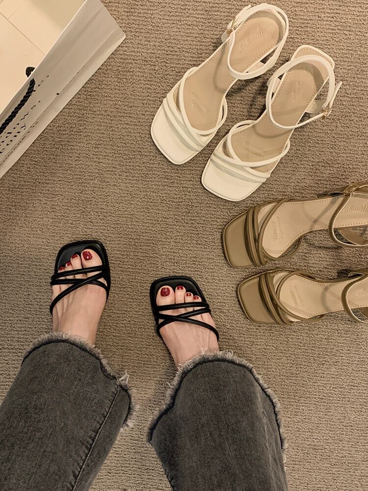2023 年の夏の新しいファッションの厚いヒールのサンダルの女性は、シンプルな気質のフランスのレトロな一言でハイヒールを履いています 靴 シューズ サマー 夏物 jxjxf76254647618