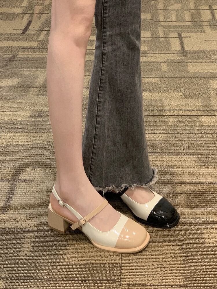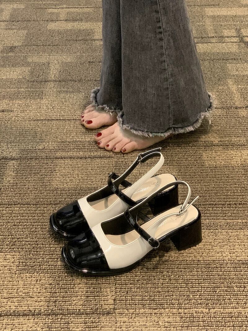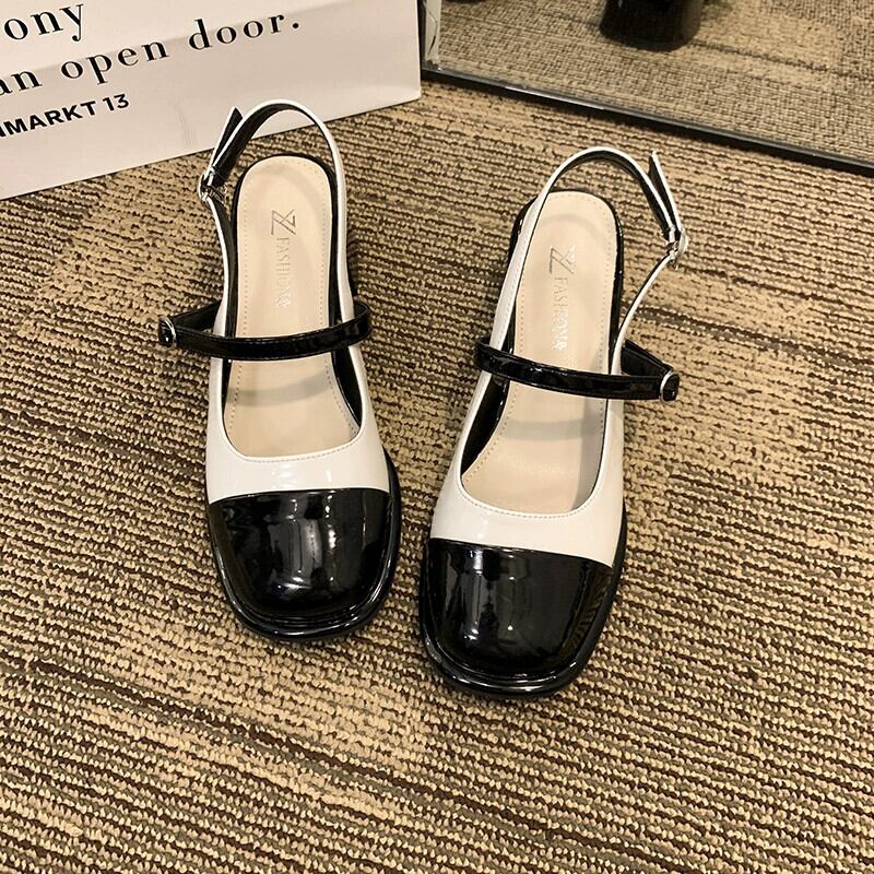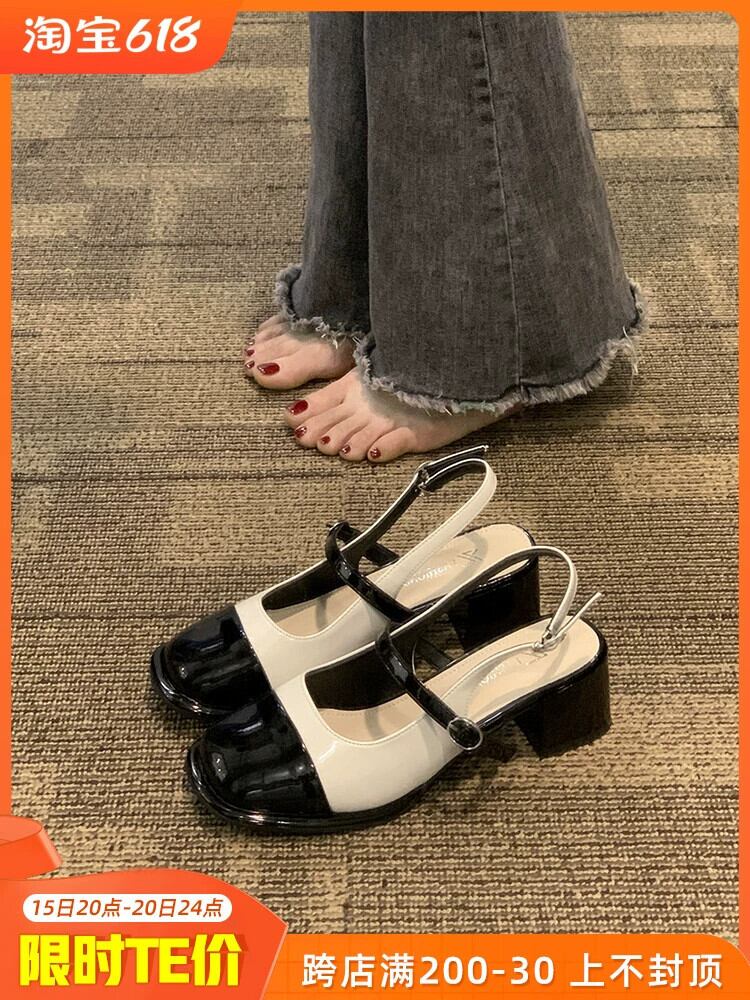 サンダルの女性のスカート 2023 夏の新ファッションオールマッチ優しいレトロ厚いヒールノンスリップ小さな革靴 シューズ サマー 夏物 レザー jxjxf95011521465
