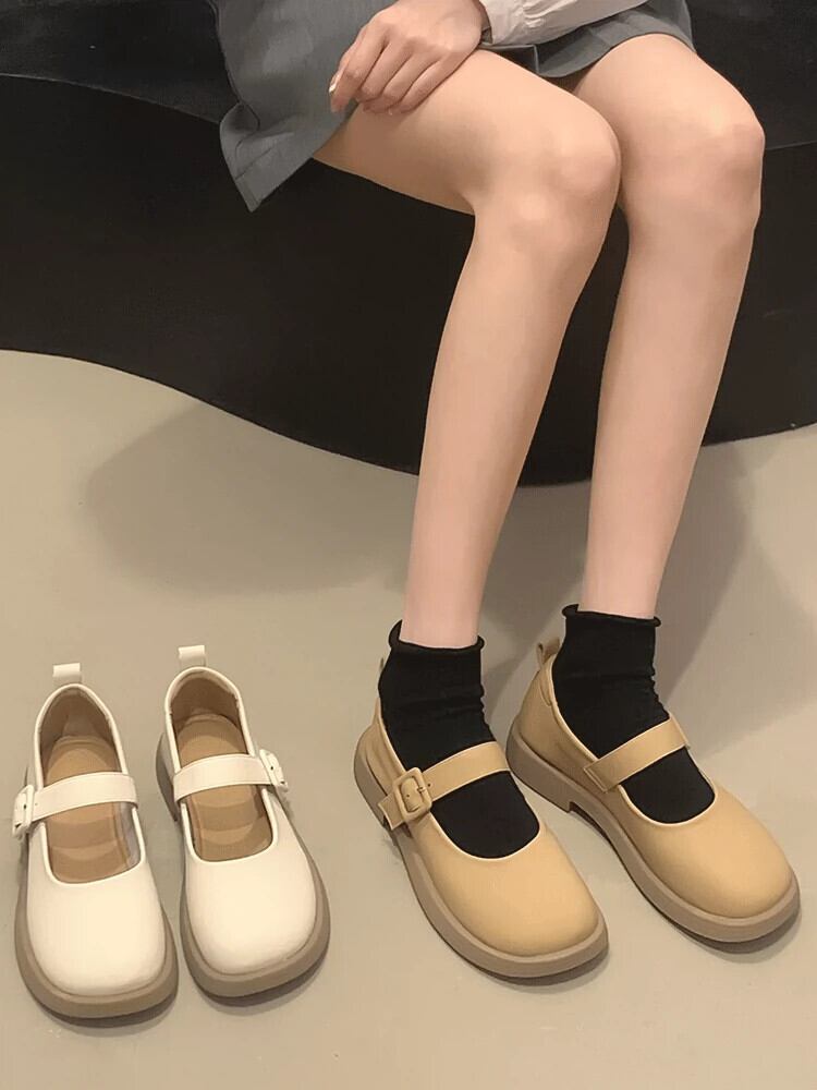 ラウンドトゥシングルシューズレディース 2023 春と秋の新ファッションオールマッチ comtable ソフト底浅い口メリージェーン小さな革靴トレンド スプリング 春物 オータム 秋物 ラウンドトー レザー jxjxf95340153632