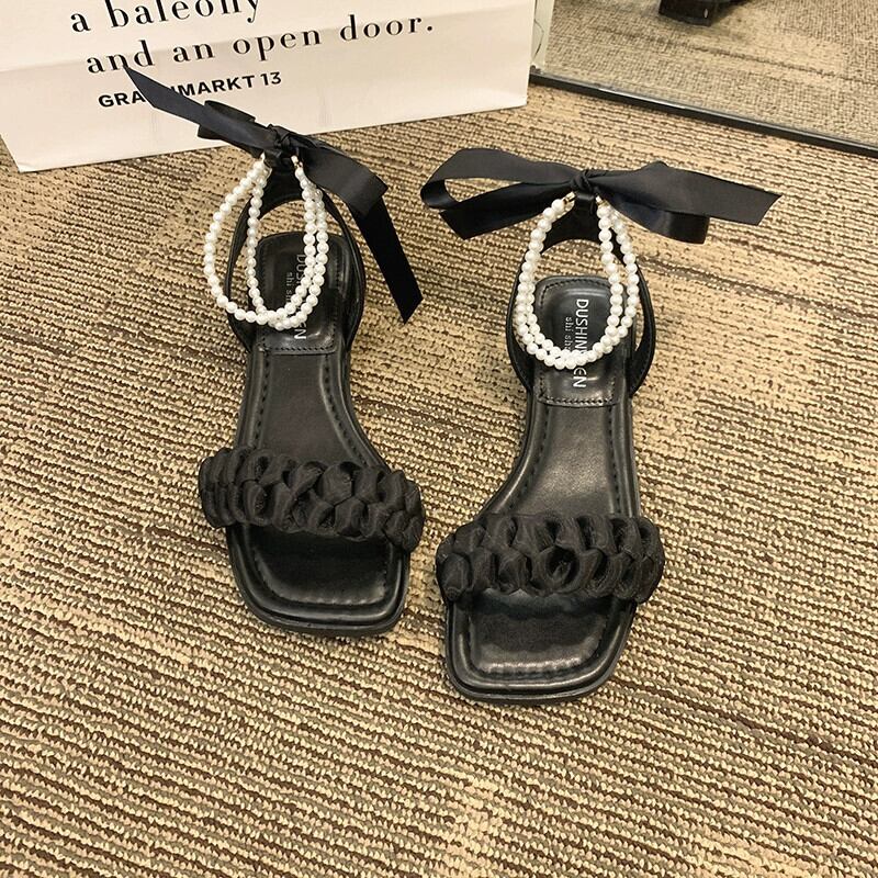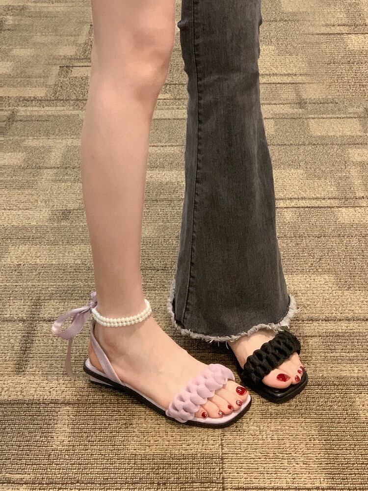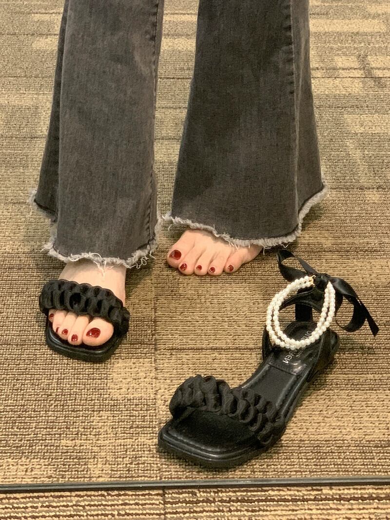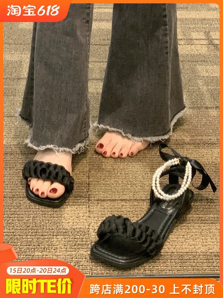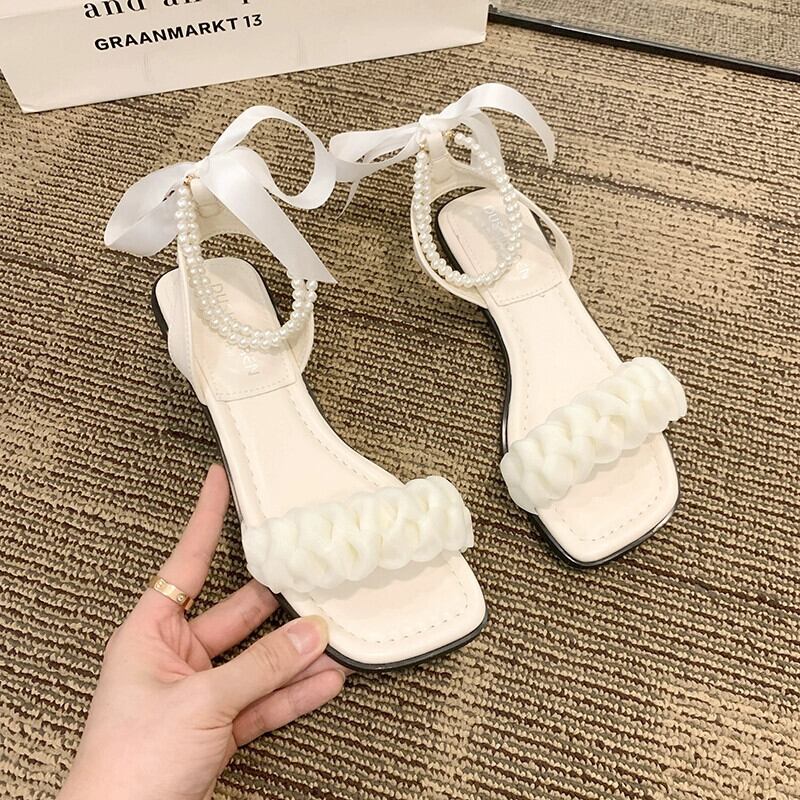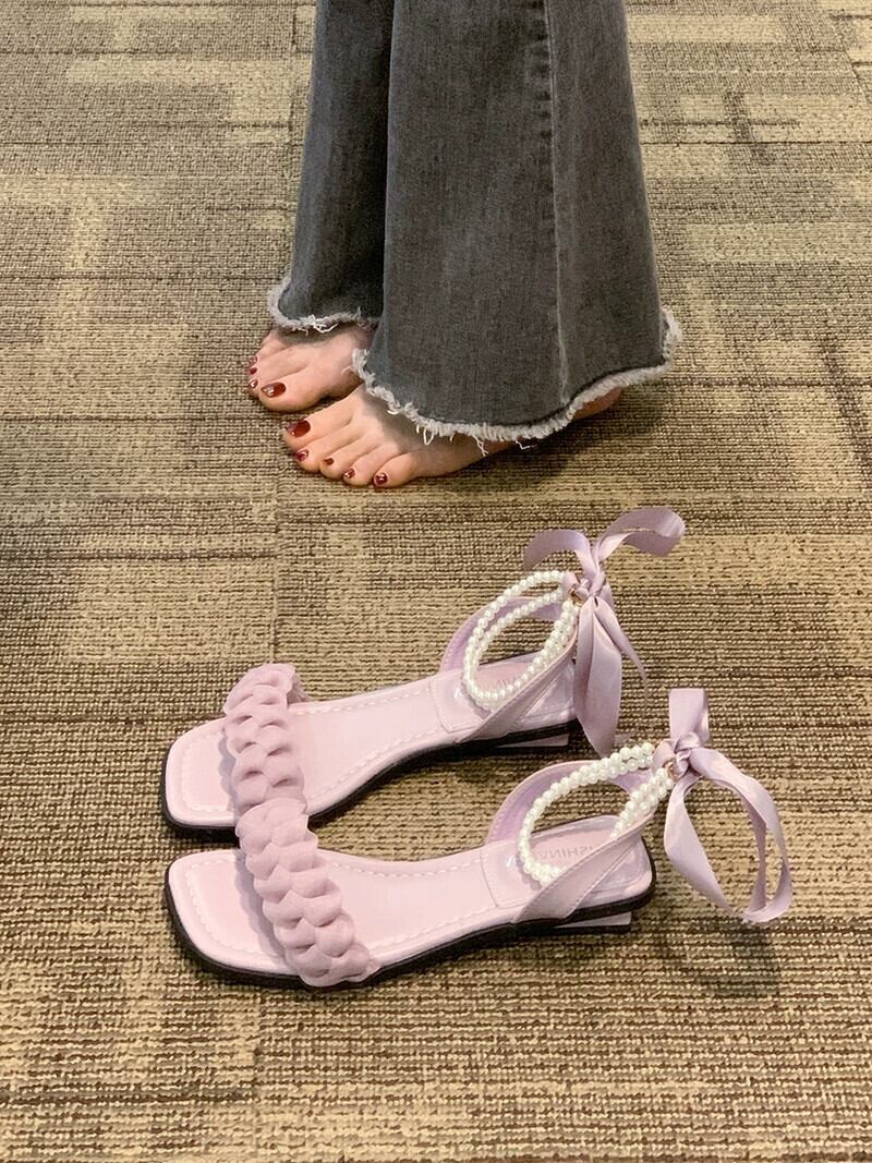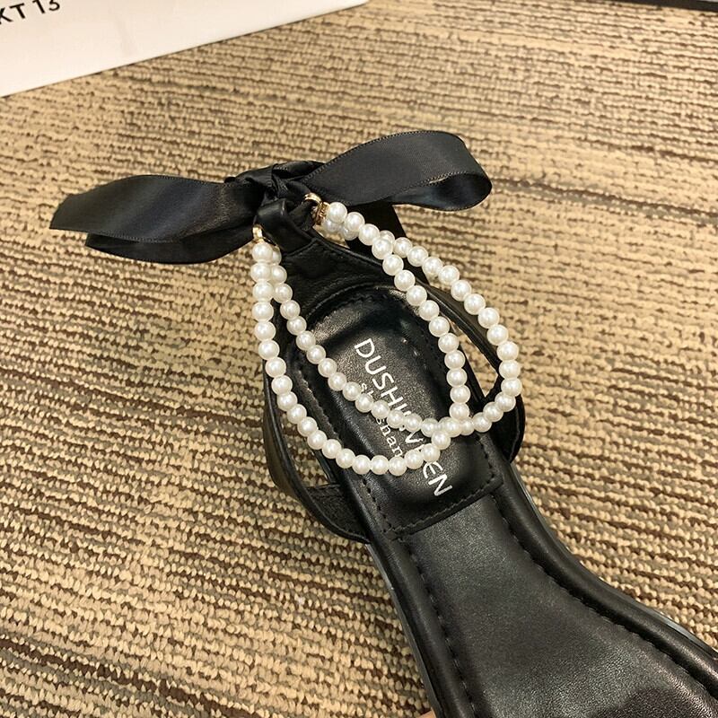 女性のサンダル 2023 夏の新ファッション eign スタイル真珠 comtable フラットノンスリップフェアリースタイルローマンシューズトレンド 靴 サマー 夏物 パール jxjxf20289218301