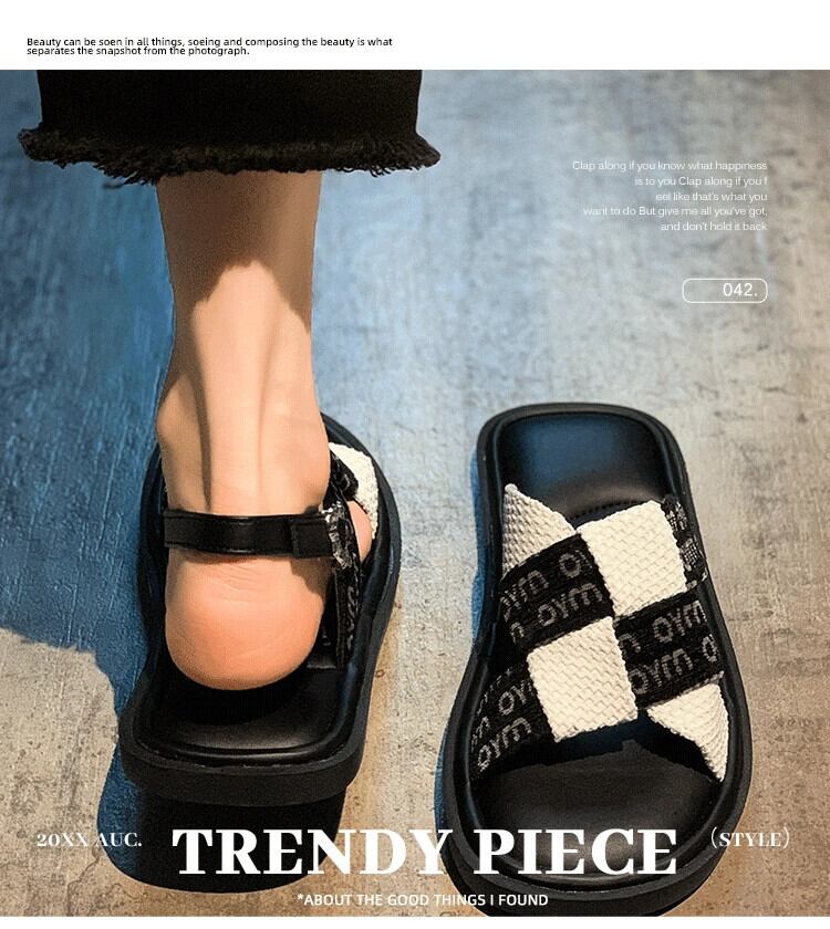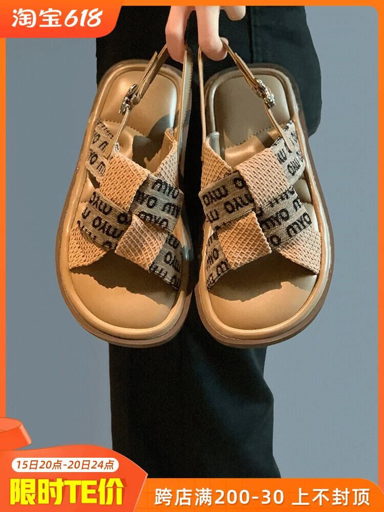 ローマサンダルレディース 2023 夏の新ファッションオールマッチレトロフランスの気質ニッチソフトソールビーチシューズトレンド 靴 サマー 夏物 jxjxf81309239526