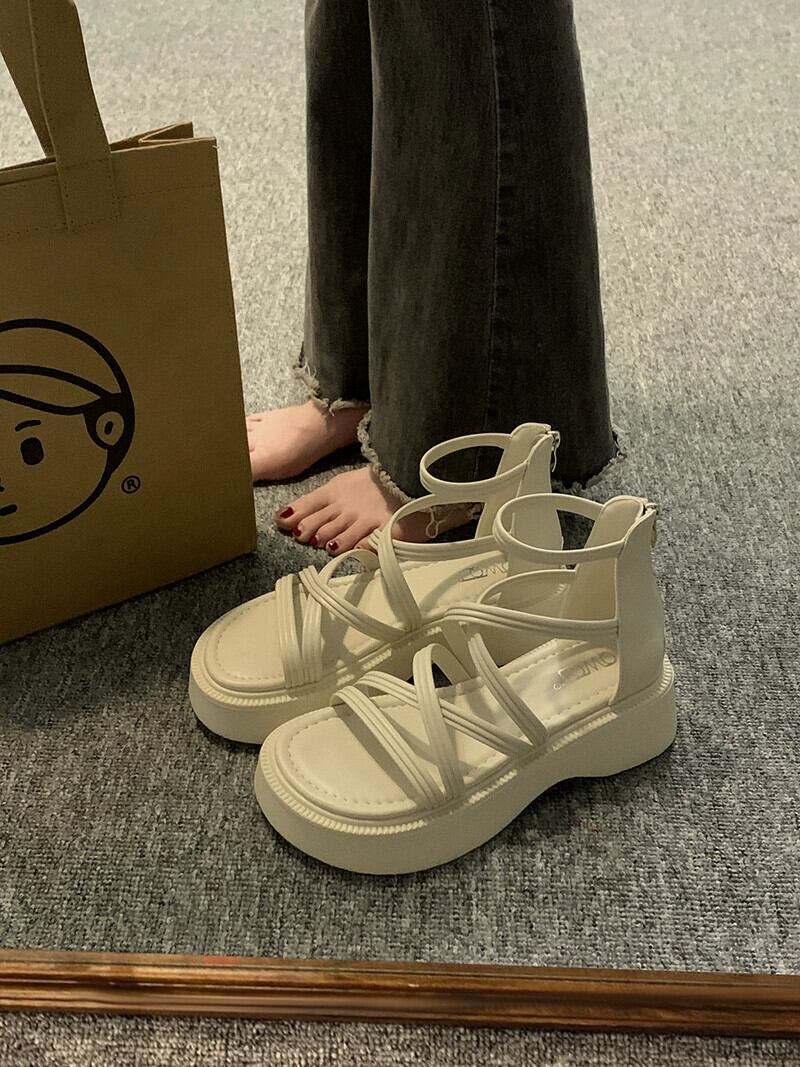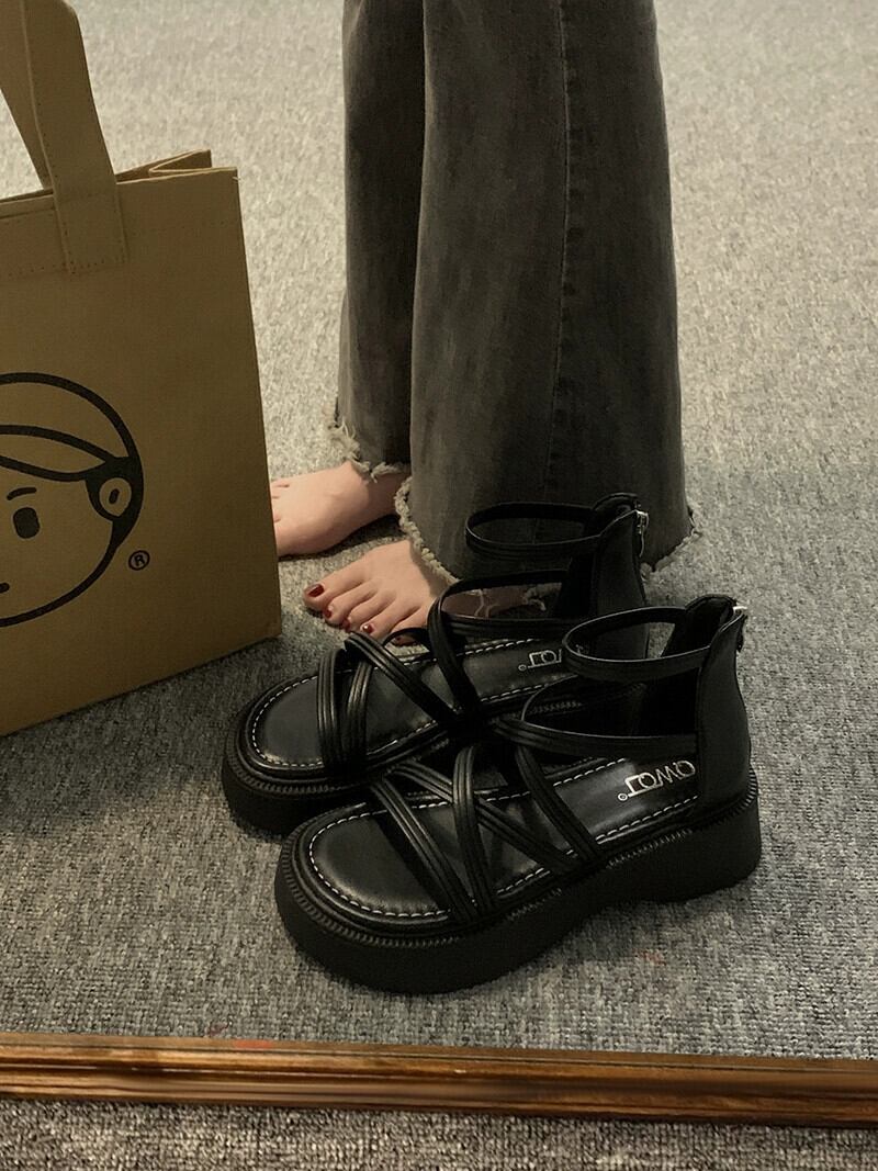 サンダル女性の 2023 夏の新ファッションオールマッチ小さなレトロ comtable 厚底ノンスリップローマンシューズ潮 靴 サマー 夏物 jxjxf81930567602