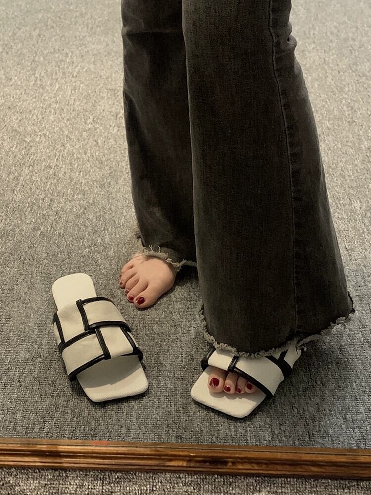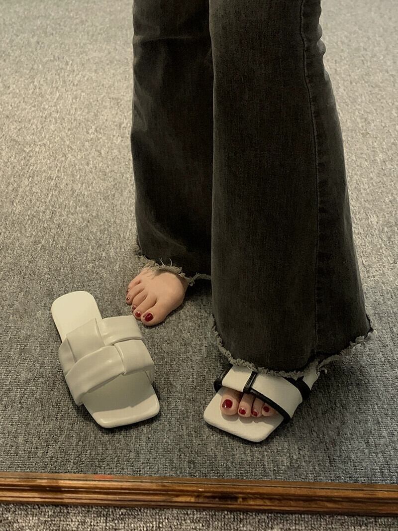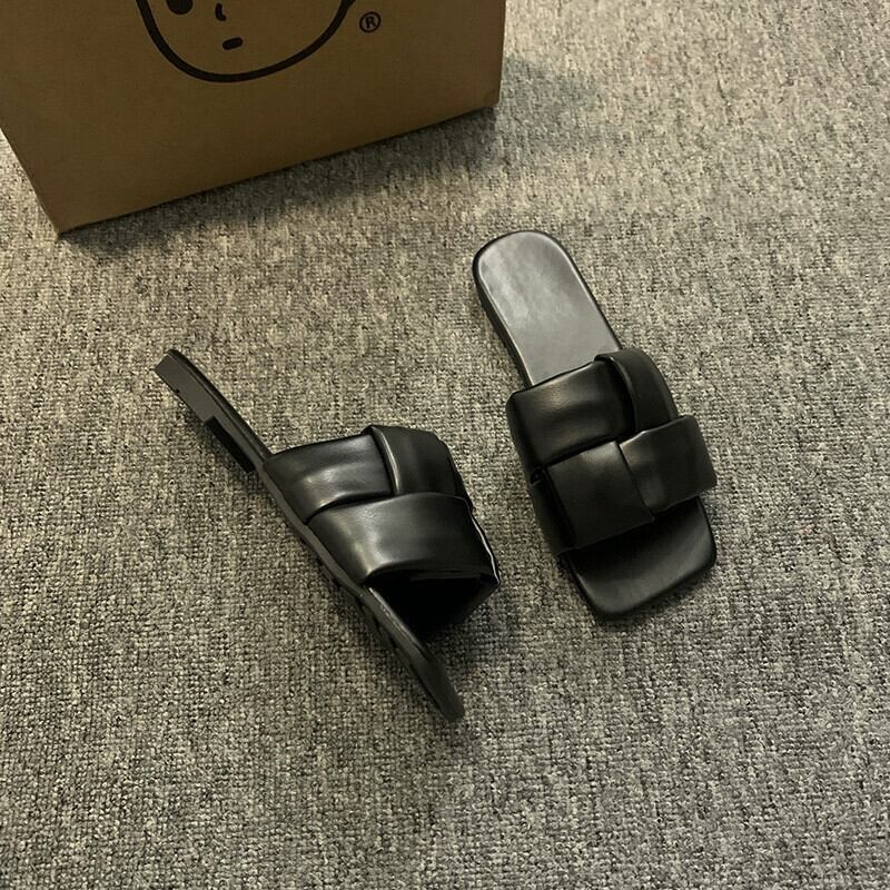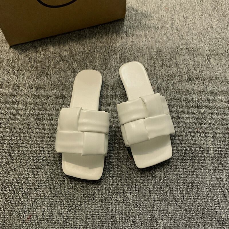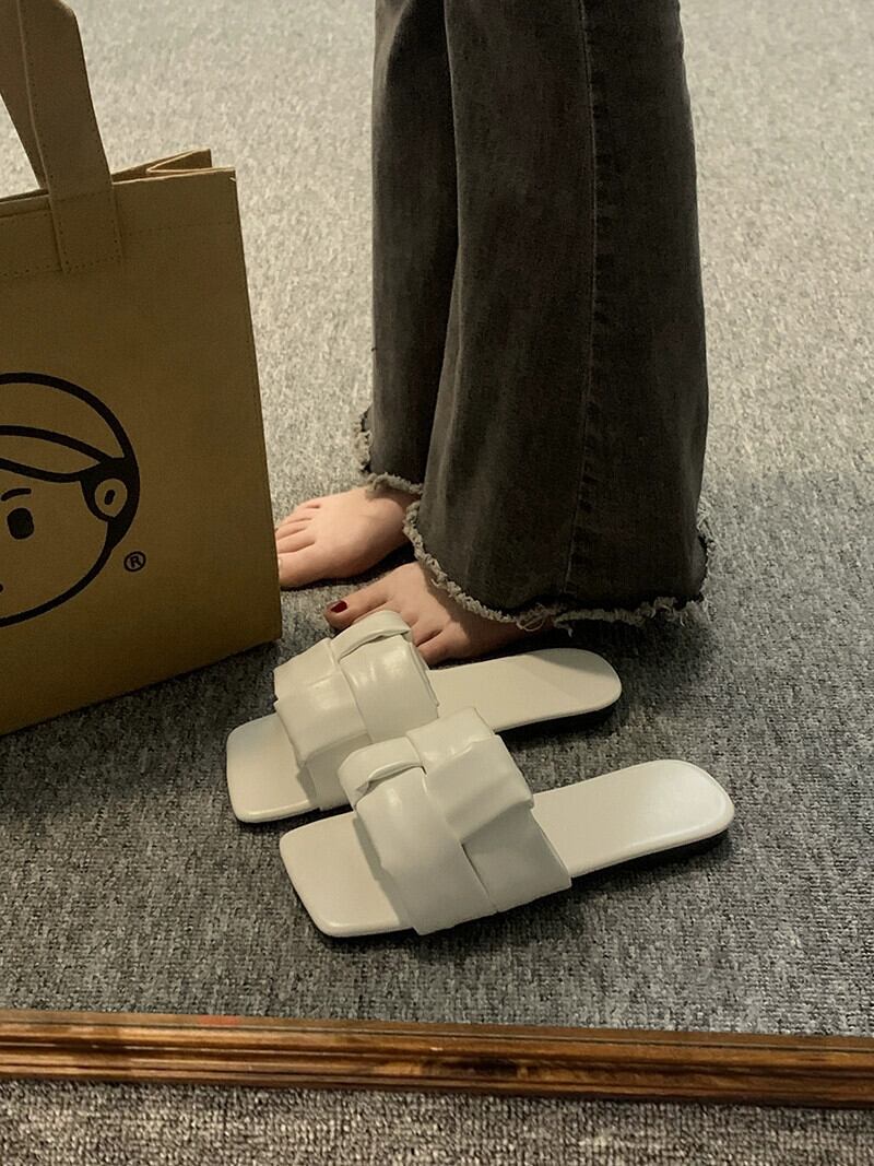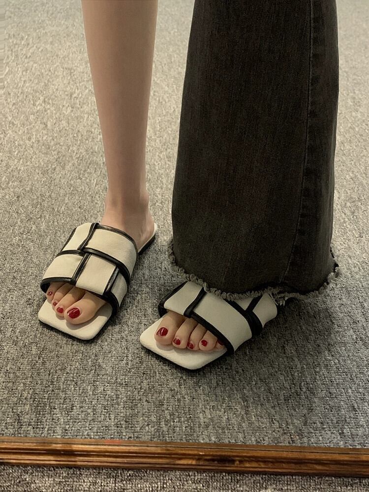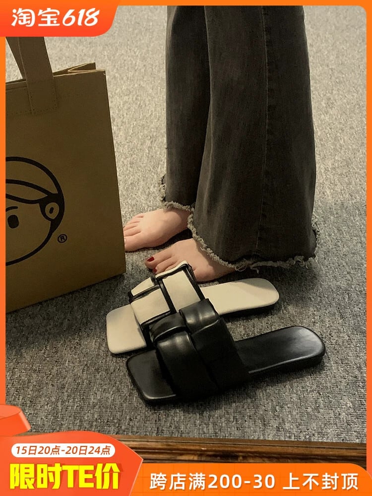夏スリッパ女性のアウターウェア 2023 新しいファッションオールマッチレトロ織りフラット滑り止め西洋スタイルのビーチサンダル ミュール 靴 シューズ サマー 夏物 jxjxf40740398977