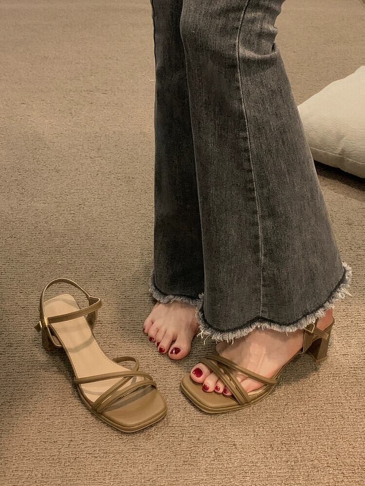 サンダル女性の 2023 夏の新ファッションオールマッチフレンチレトロ小男 eign スタイルのハイヒールの靴トレンド シューズ サマー 夏物 jxjxf15730896902