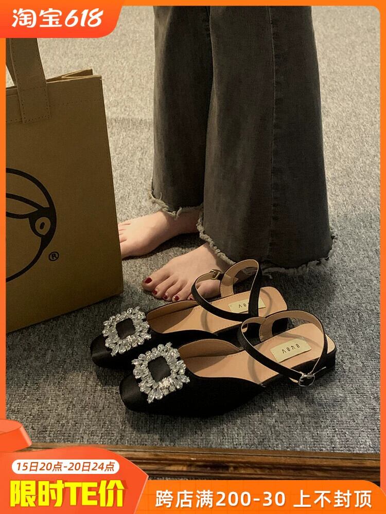 サンダルの女性のスカート 2023 夏の新ネットレッドファッションオールマッチレトロラインストーン厚いヒールノンスリップ革靴 シューズ サマー 夏物 レザー jxjxf70845887665