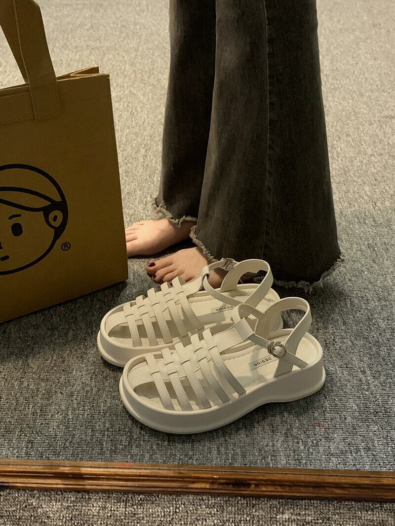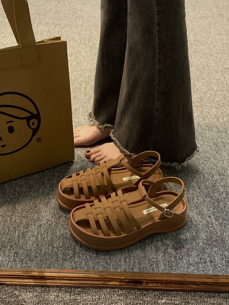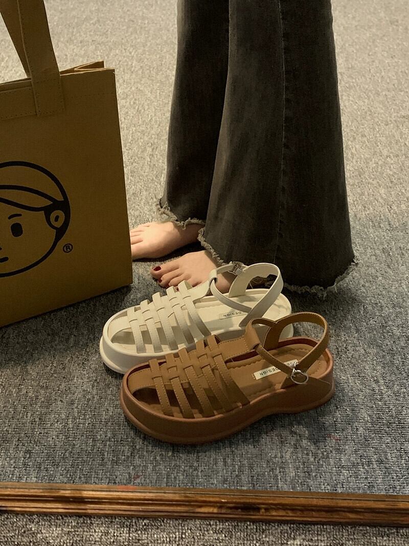 厚底ローマサンダル女性の 2023 夏の新ファッションオールマッチレトロカジュアル織り通気性ビーチシューズ潮 靴 サマー 夏物 jxjxf73172874867
