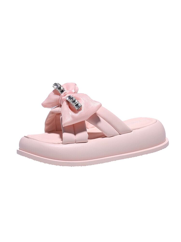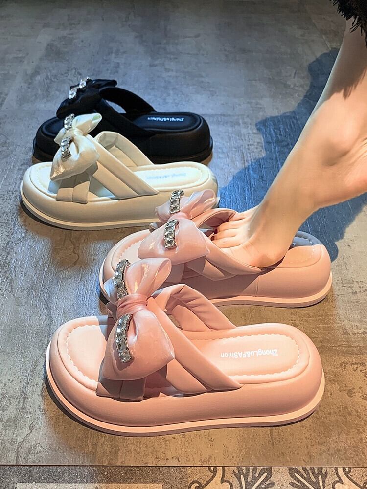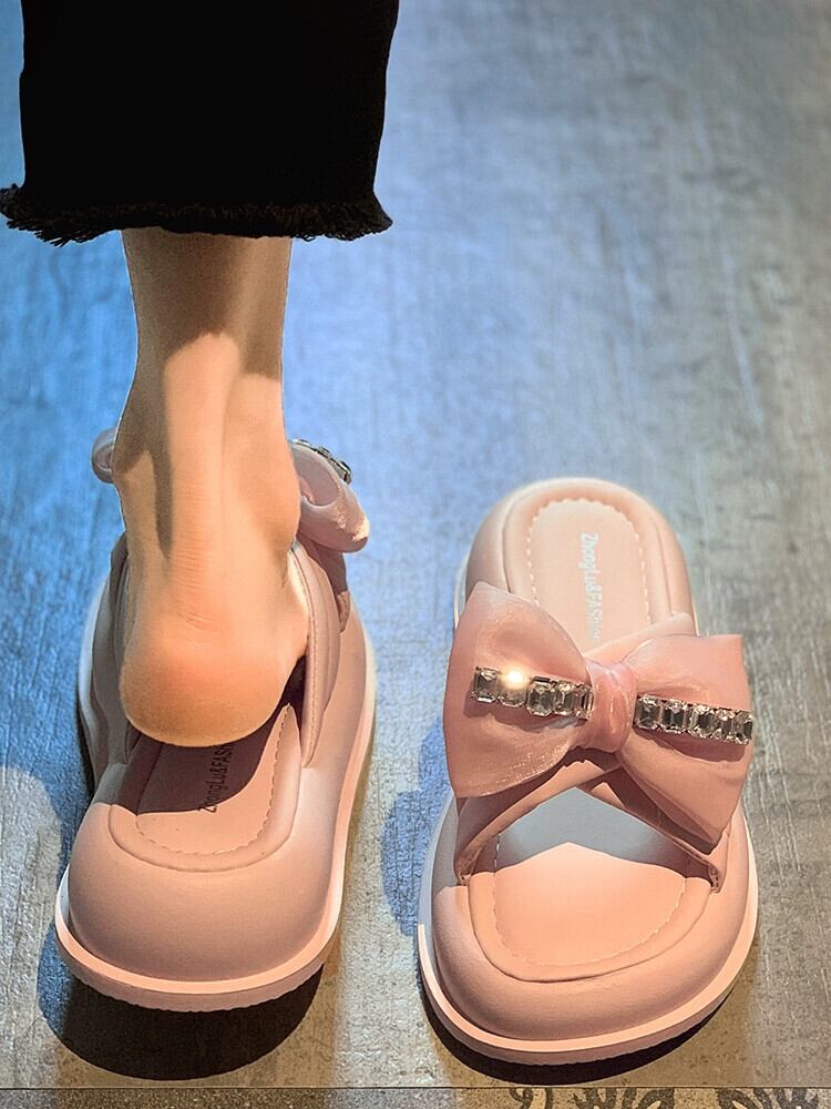 厚底スリッパレディースアウター 2023 夏の新ファッション弓ラインストーン気質オールマッチワードサンダルとスリッパ リボン ミュール 靴 シューズ サマー 夏物 jxjxf51129207922