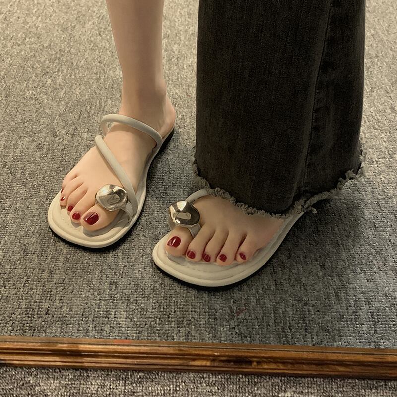 2023 年の夏の女性のスリッパ アウターウェア新しいファッションオールマッチレトロなスタイルのフラットボトムメタルトゥサンダルとスリッパ ミュール 靴 シューズ サマー 夏物 jxjxf55666430152