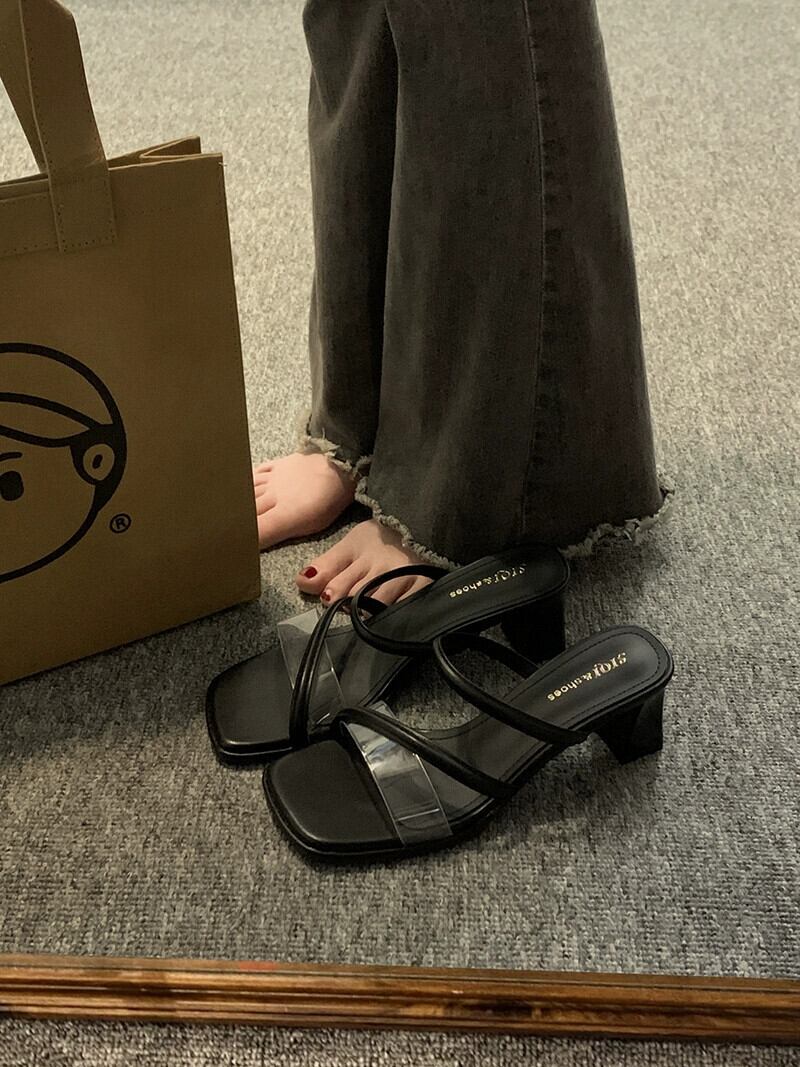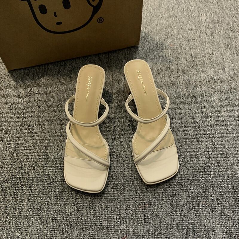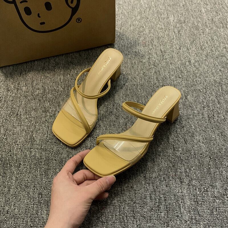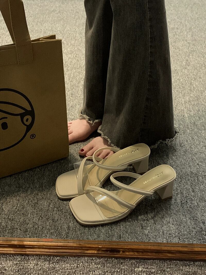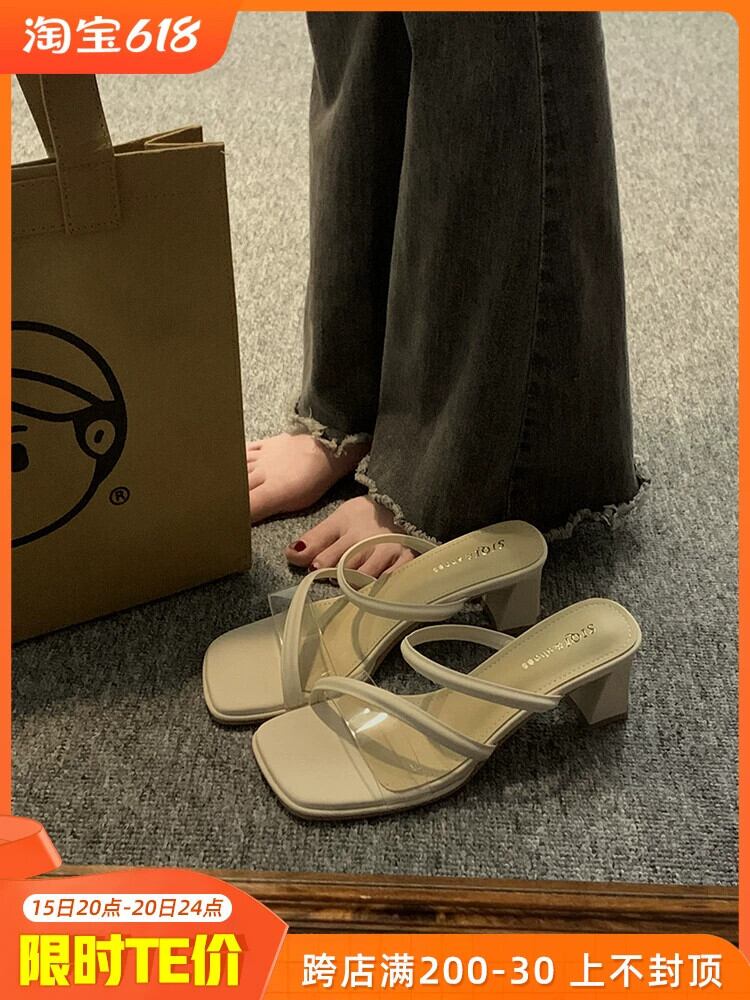 夏のスリッパの女性のアウターウェア 2023 新しいファッションオールマッチ小さなレトロな気質ハイヒールの滑り止めビーチサンダル 靴 シューズ ミュール サマー 夏物 jxjxf25360748862