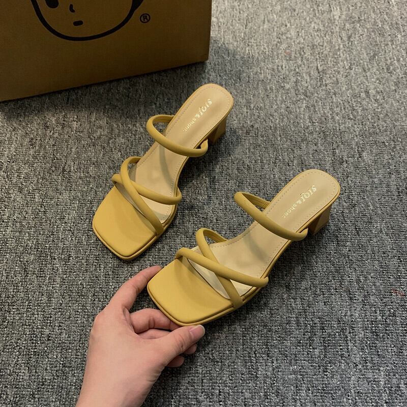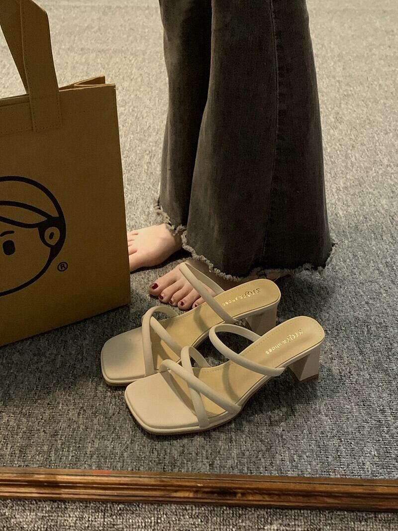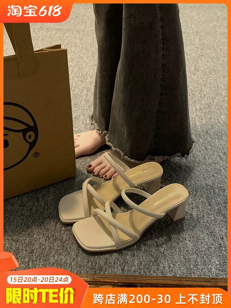 アウタースリッパ女性の夏の 2023 新しいファッションオールマッチフレンチレトロ小さな厚いヒールノンスリップビーチサンダル ミュール 靴 シューズ サマー 夏物 jxjxf63174285976