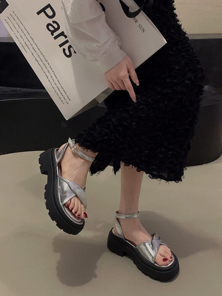 サマーサンダル レディース 2023 新ファッションオールマッチレトロコンタブル厚底滑り止め一言ビーチサンダル潮 靴 シューズ 夏物 スリッポン jxjxf82511666979