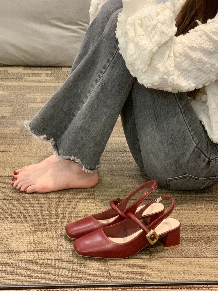 Baotou サンダルの女性の 2023 夏の新ファッション優しいレトロ小さな気質太いヒールノンスリップ小さな革靴 シューズ サマー 夏物 レザー jxjxf88027399740