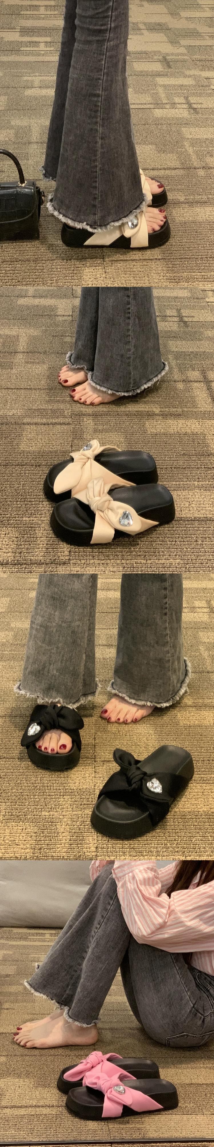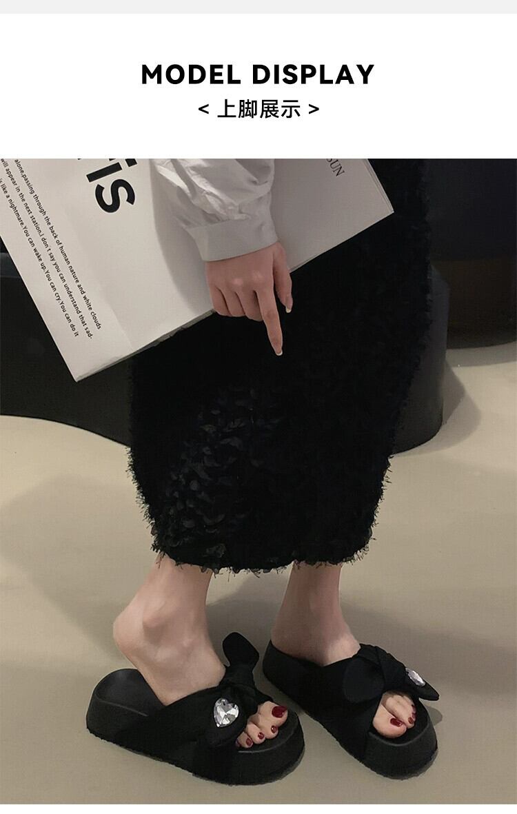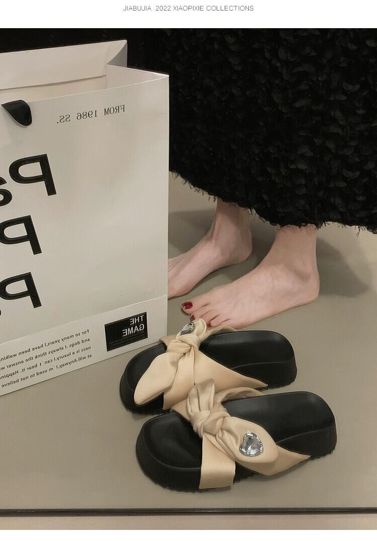 厚底スリッパレディースアウター 2023 夏の新ファッションオールマッチ気質ちょう結びラインストーンワードサンダルとスリッパ リボン ミュール 靴 シューズ サマー 夏物 jxjxf18645082033