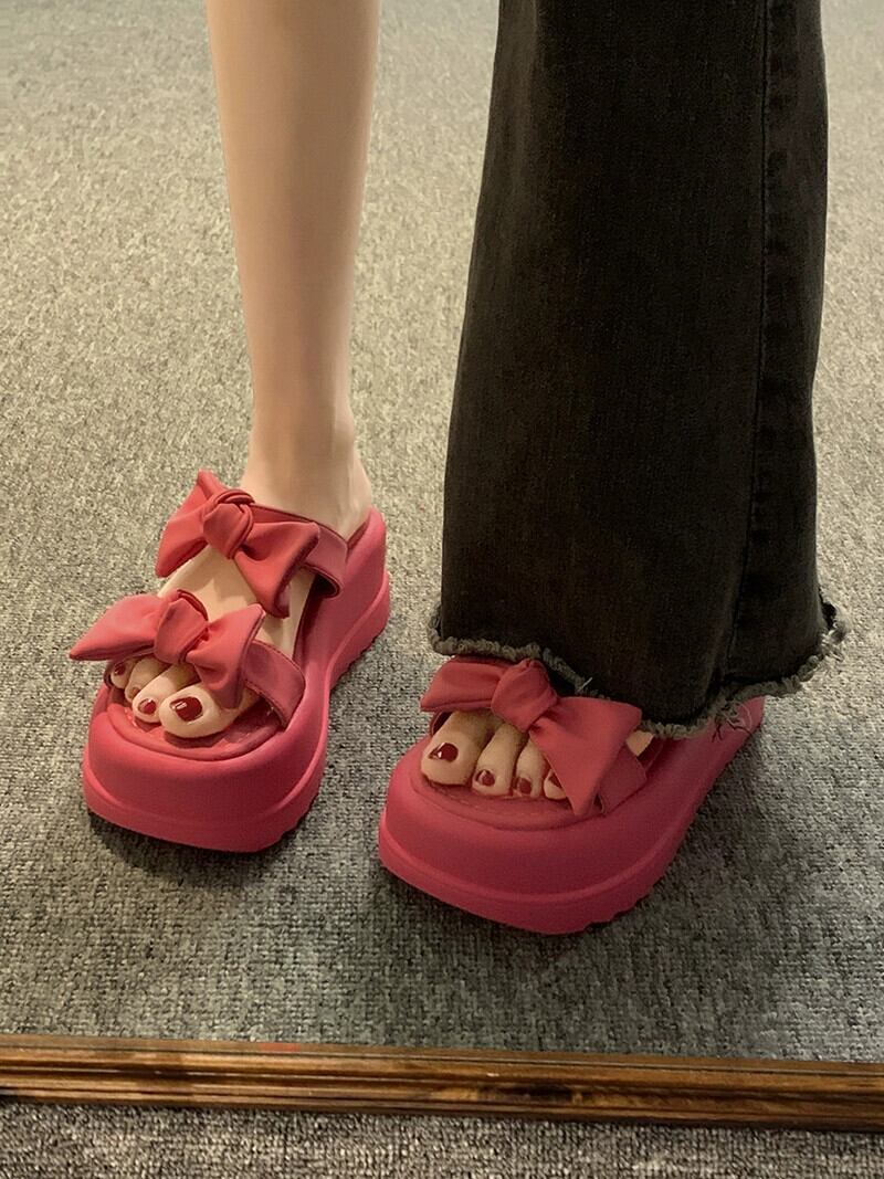 一言スリッパ レディース アウター 2023 夏新作 ちょう結び フレンチレトロ アインスタイル マフィン 厚底サンダル リボン ミュール 靴 シューズ サマー 夏物 jxjxf18939221015