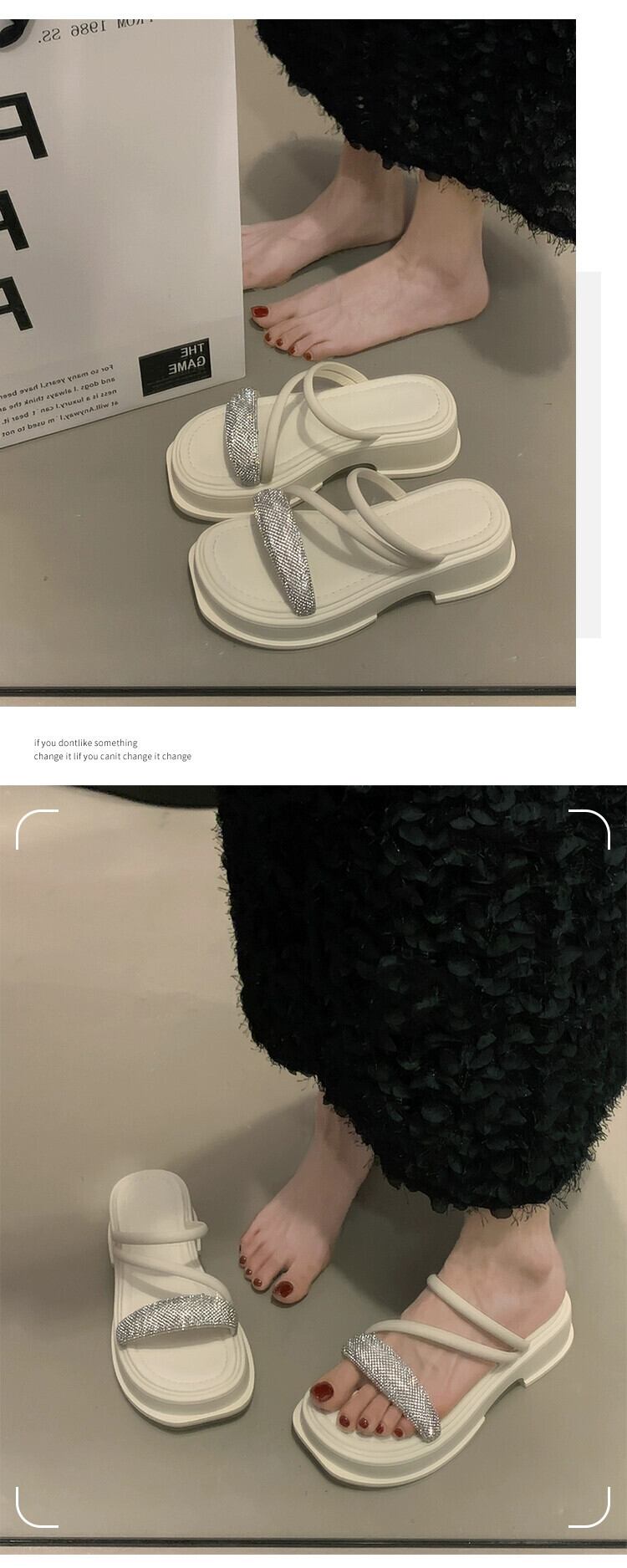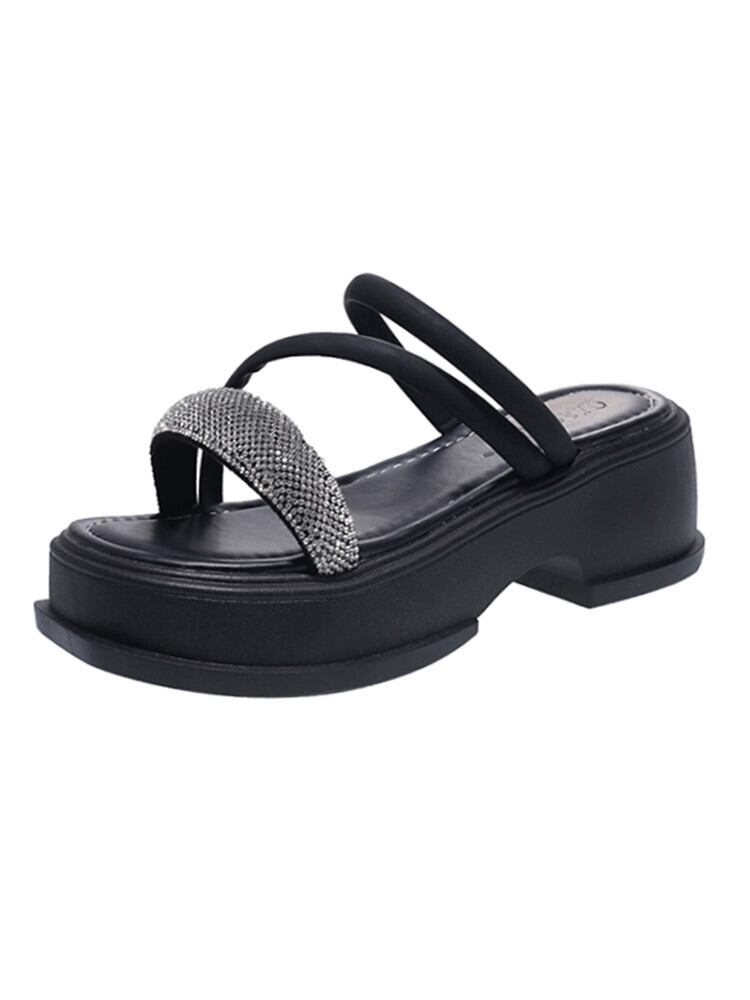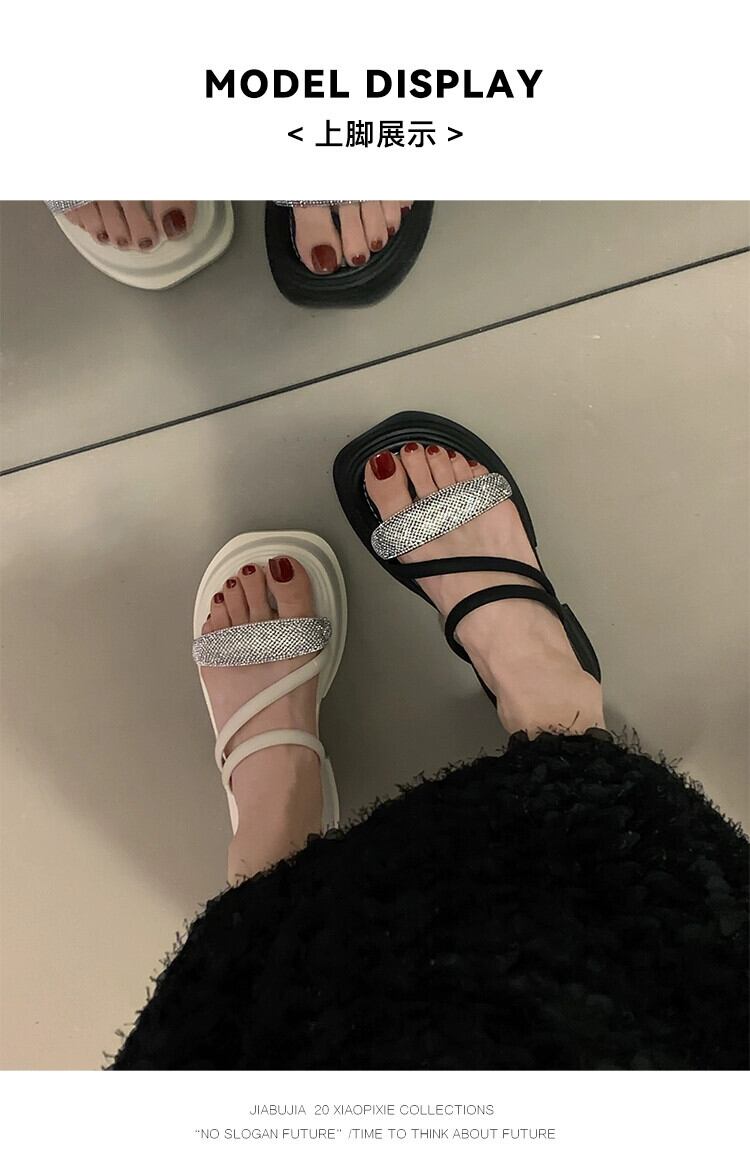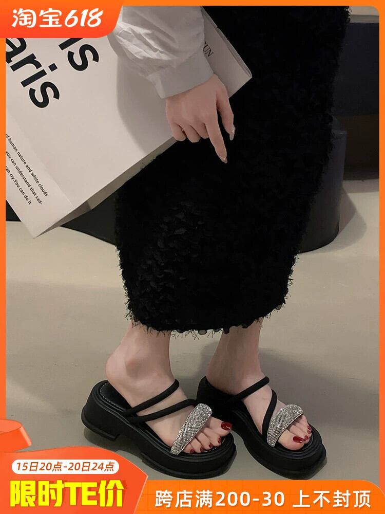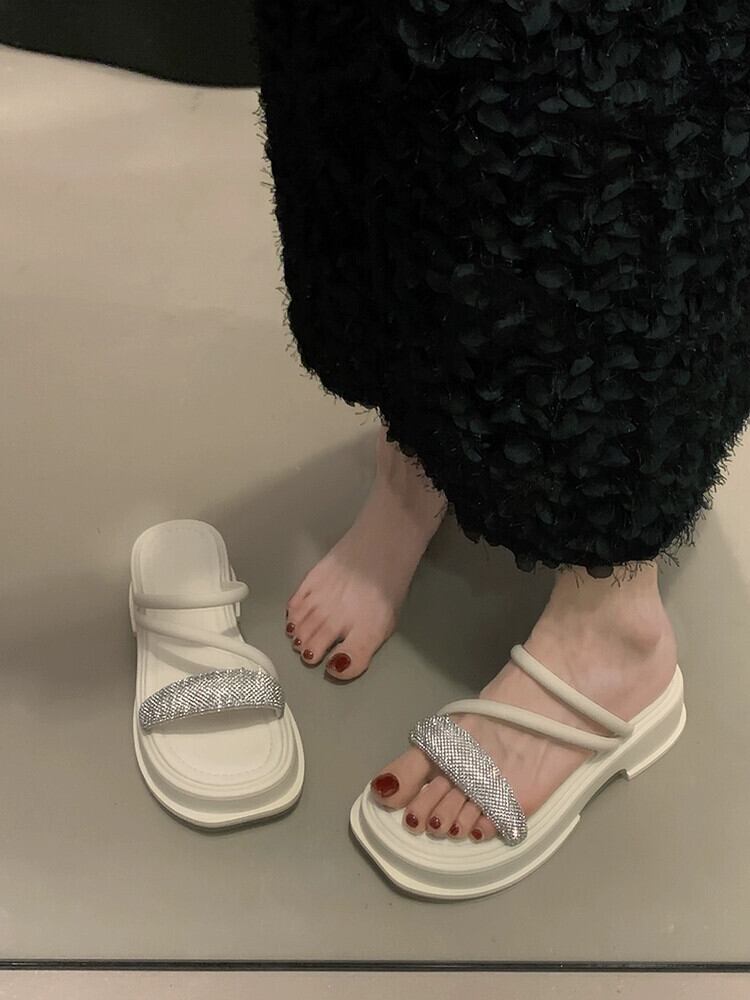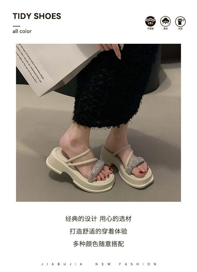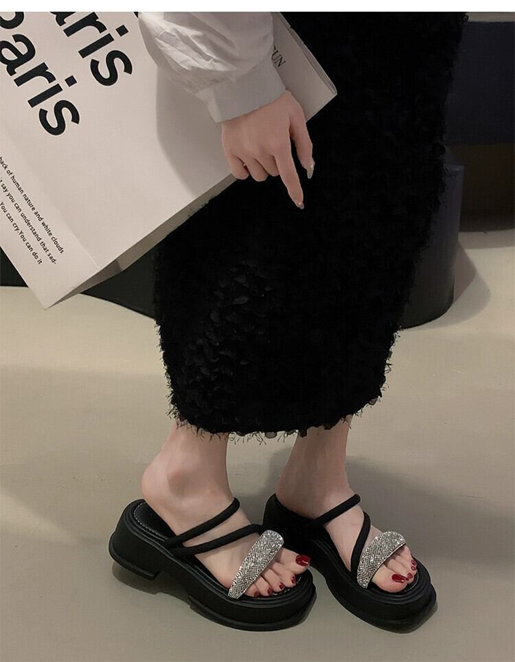 インターネットセレブスリッパレディースアウターウェア 2023 夏の新ファッションオールマッチレトロラインストーン厚底ノンスリップアインスタイルサンダル ミュール 靴 シューズ サマー 夏物 jxjxf28103133221