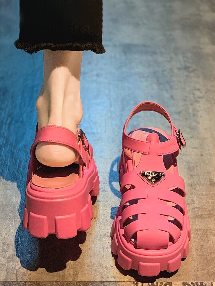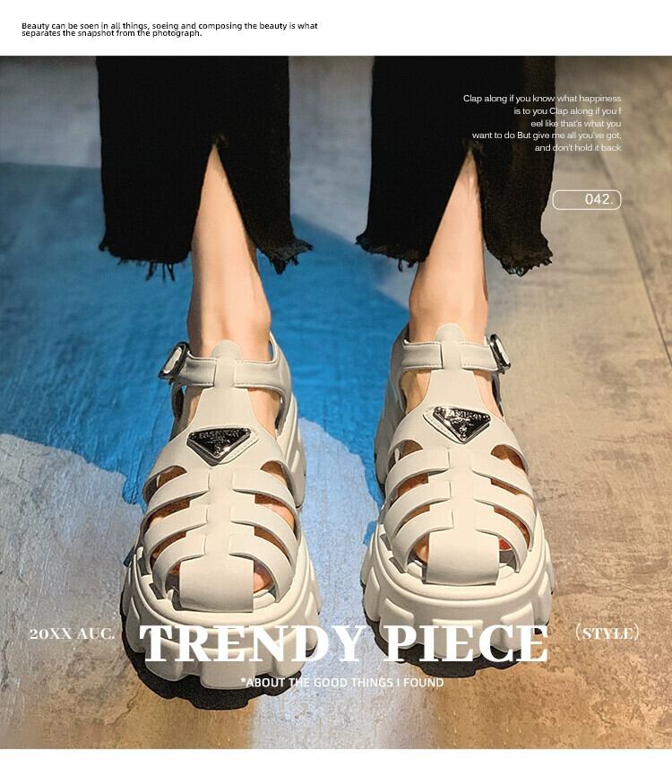 ローマンサンダル女性の 2023 夏の新ファッションレトロオールマッチ学生厚底滑り止めカジュアル豚ケージ靴潮 シューズ サマー 夏物 jxjxf9856611118