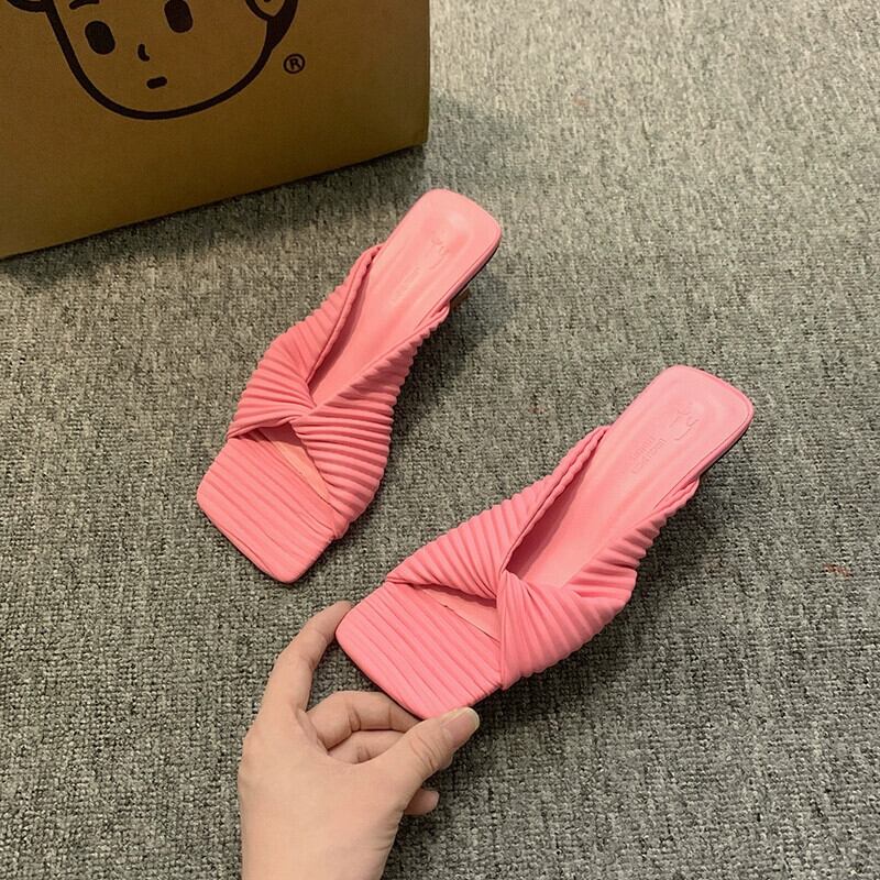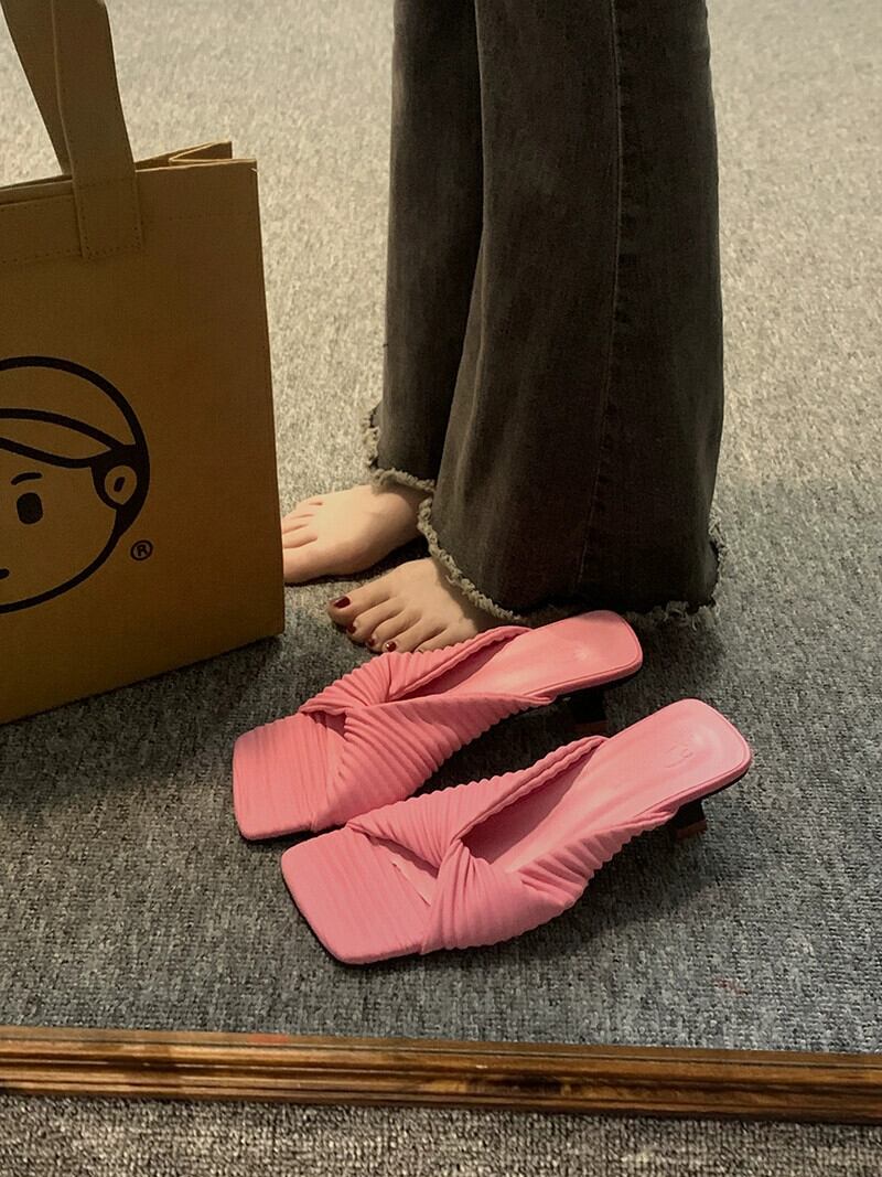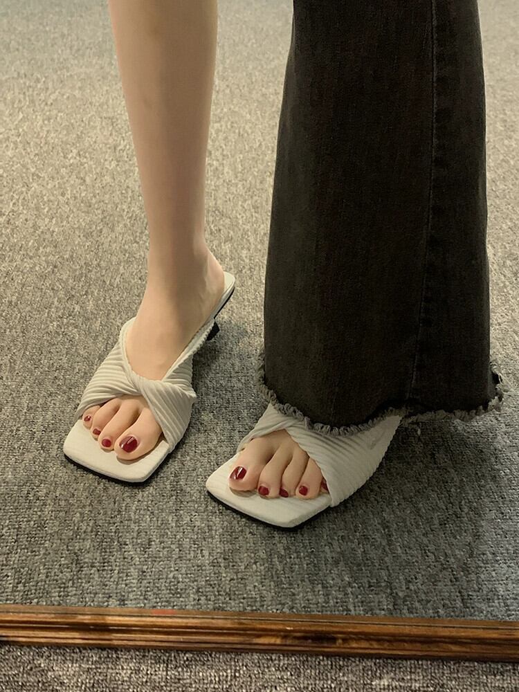 2023年の夏の女性用スリッパアウターウェアの新しいスーパーファッションオールマッチフェアリースタイルの細いヒールのワンワードサンダルとスリッパのトレンド ミュール 靴 シューズ サマー 夏物 jxjxf58431901218