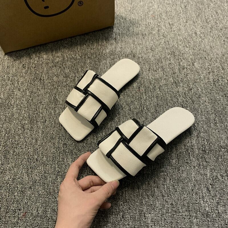 スリッパ女性のアウターウェア 2023 夏の新ファッションオールマッチレトロ織りフラットノンスリップ eign スタイルのビーチサンダル ミュール 靴 シューズ サマー 夏物 jxjxf32253752954