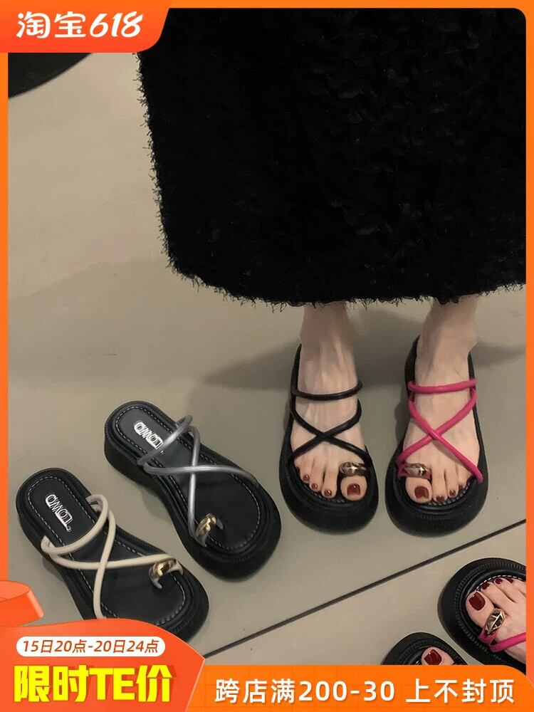 つま先スリッパのセット女性のアウターウェア 2023 夏の新しいネットレッドオールマッチレトロなスタイルの厚底滑り止めサンダルとスリッパトレンド ミュール 靴 シューズ サマー 夏物 jxjxf1553466374