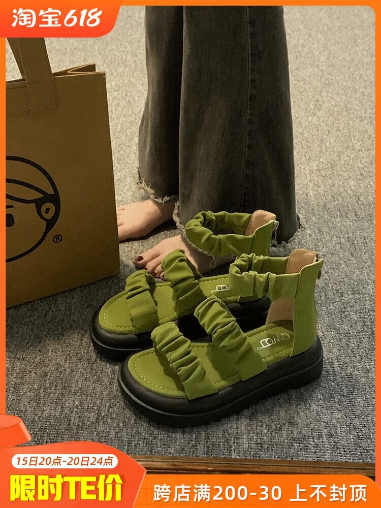 ネットレッドサンダルの女性の 2023 夏の新ファッションオールマッチ小型厚底滑り止め eign スタイルのレトロなローマの靴 シューズ サマー 夏物 jxjxf31314549109