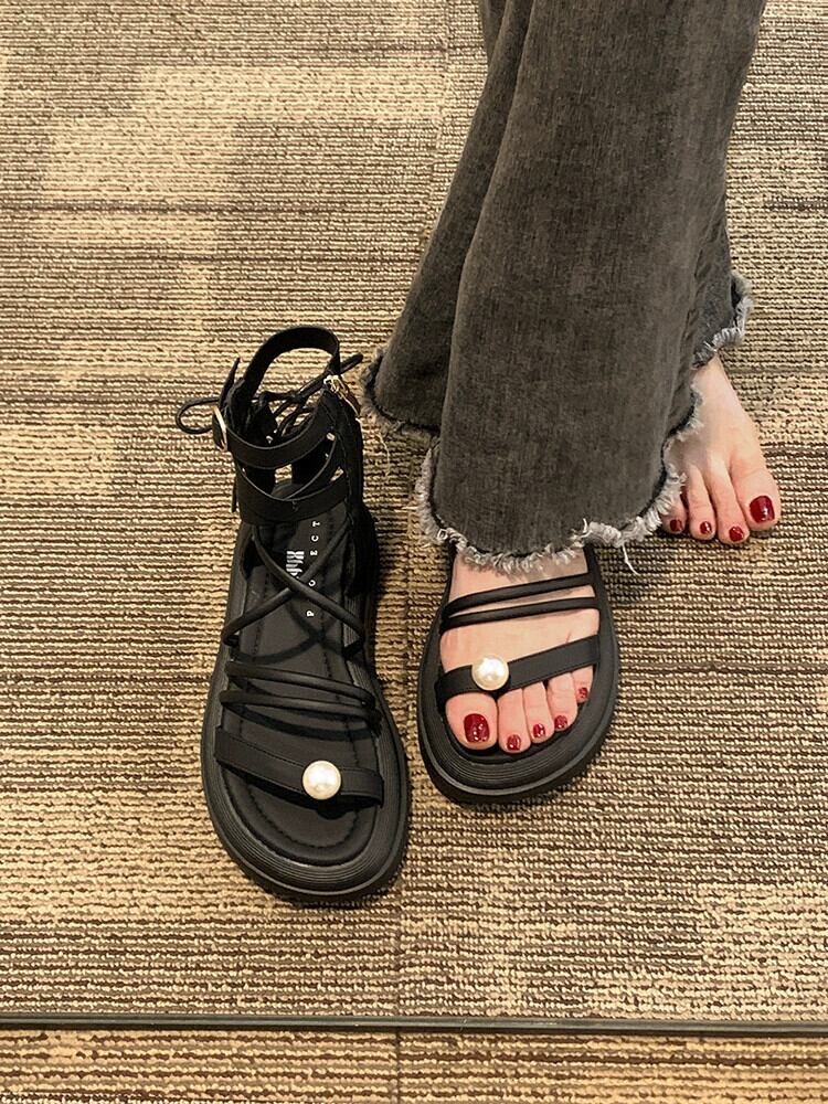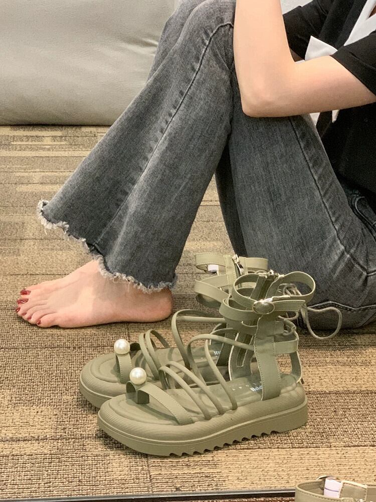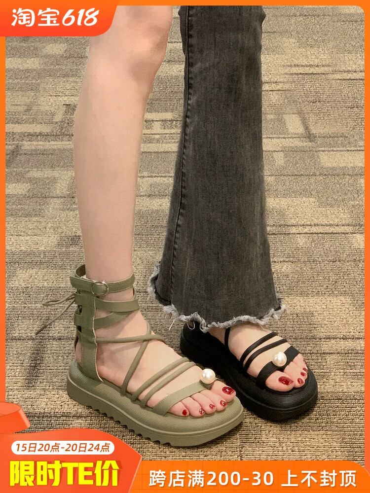 インターネット有名人サンダルの女性の 2023 夏の新しいファッションオールマッチ小さな快適な厚底滑り止めアインスタイルローマンシューズ 靴 サマー 夏物 jxjxf70258832892