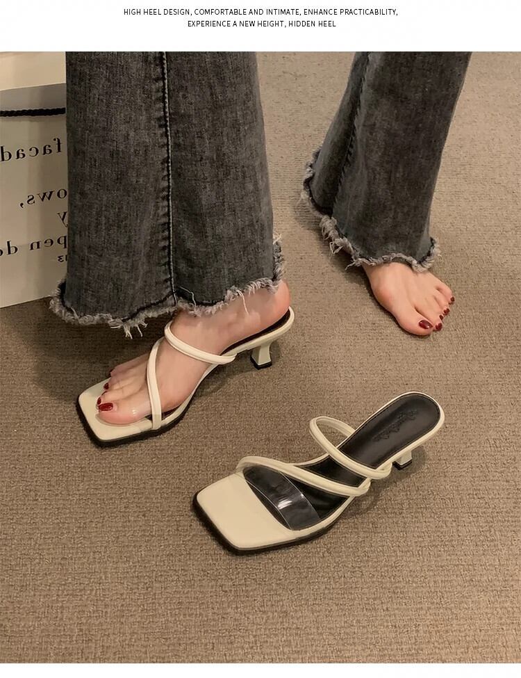 アウターウェア夏の女性の 2023 新しいファッションオールマッチフレンチレトロ小さなハイヒールサンダルとスリッパ 靴 シューズ ミュール サマー 夏物 jxjxf43151574056