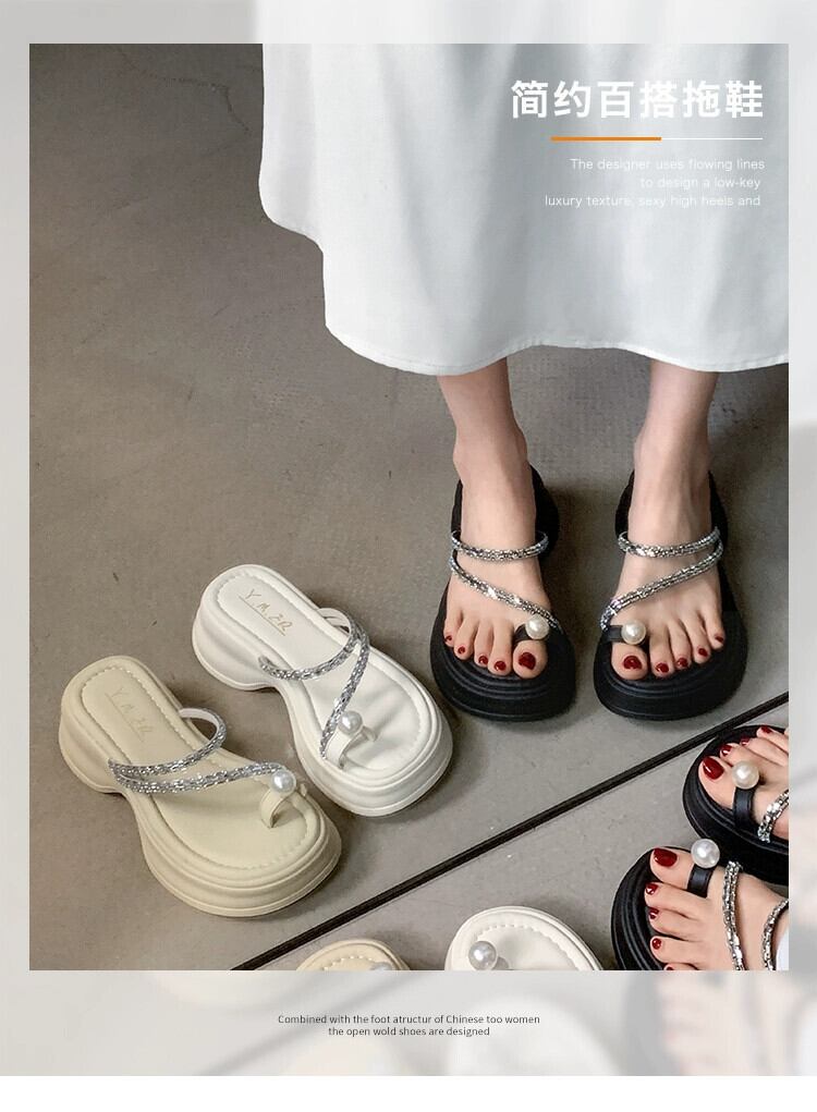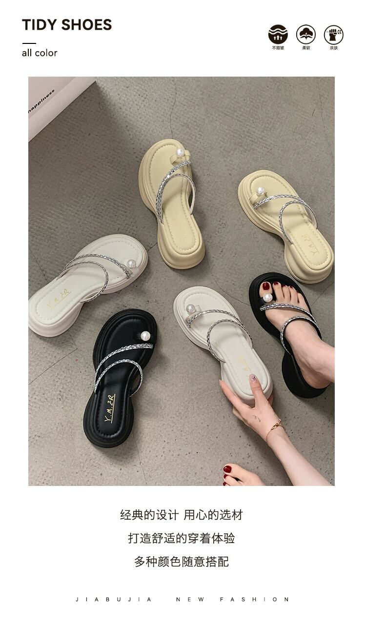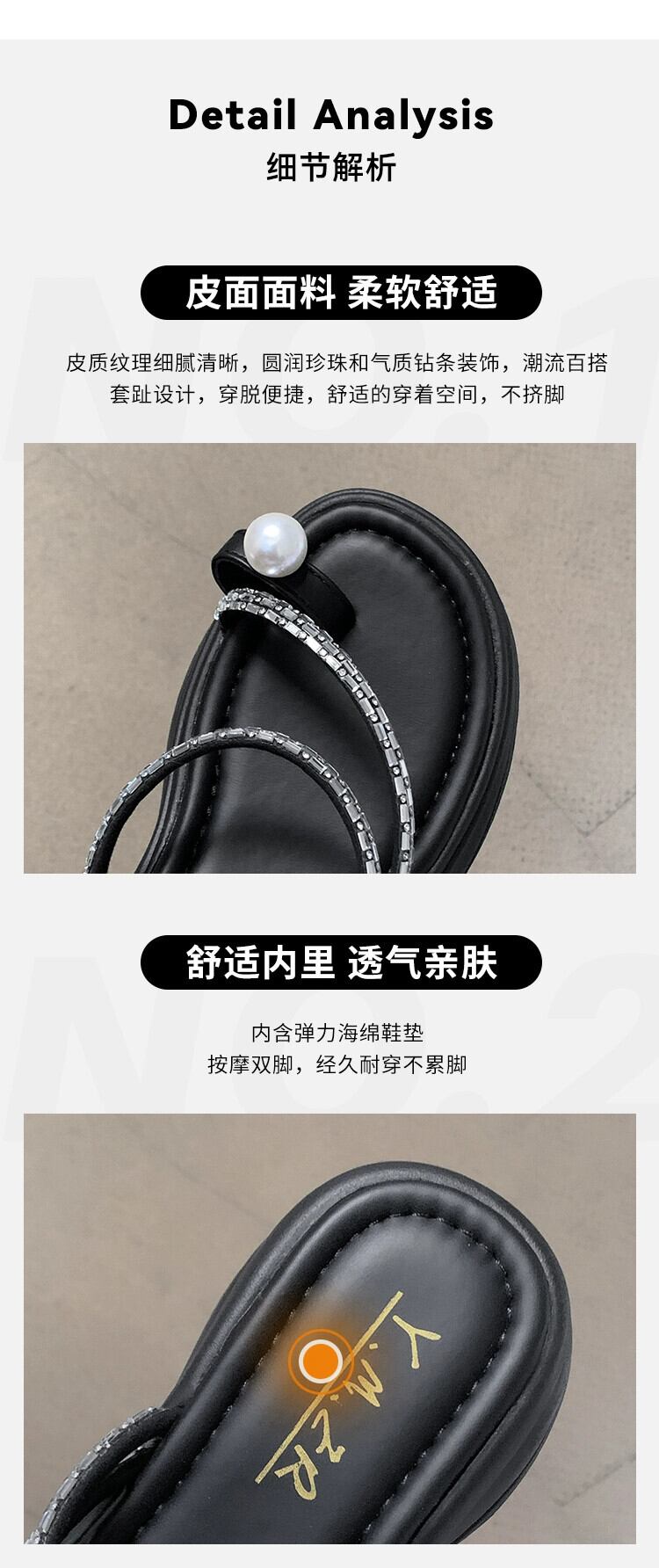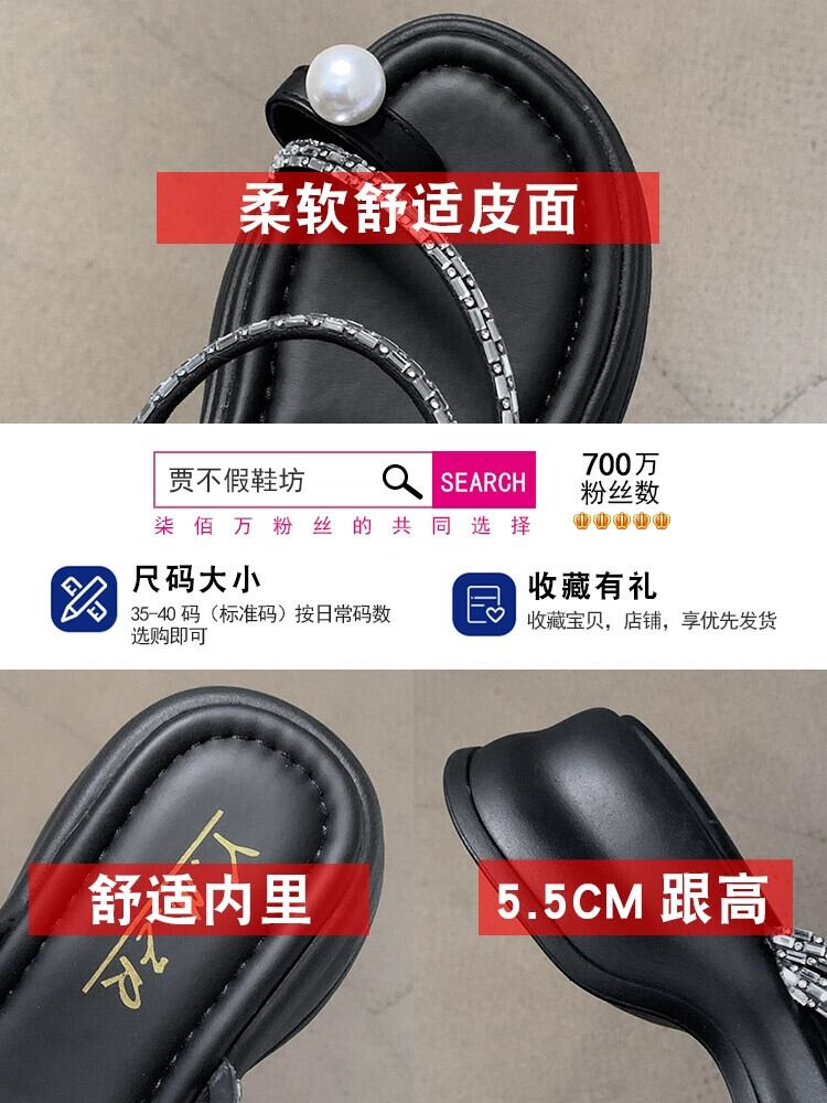厚いヒールスリッパの女性の 2023 夏の新スタイルフレンチレトロ eign スタイルパールラインストーン妖精サンダルとスリッパトレンド ミュール 靴 シューズ サマー 夏物 真珠 jxjxf74231141238