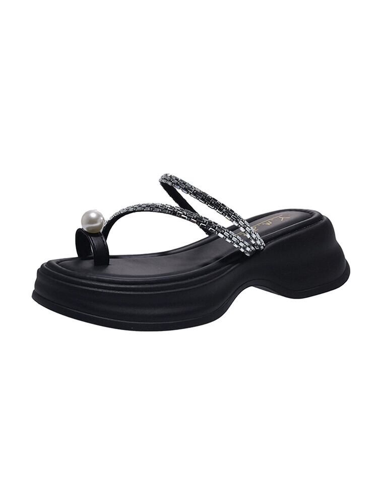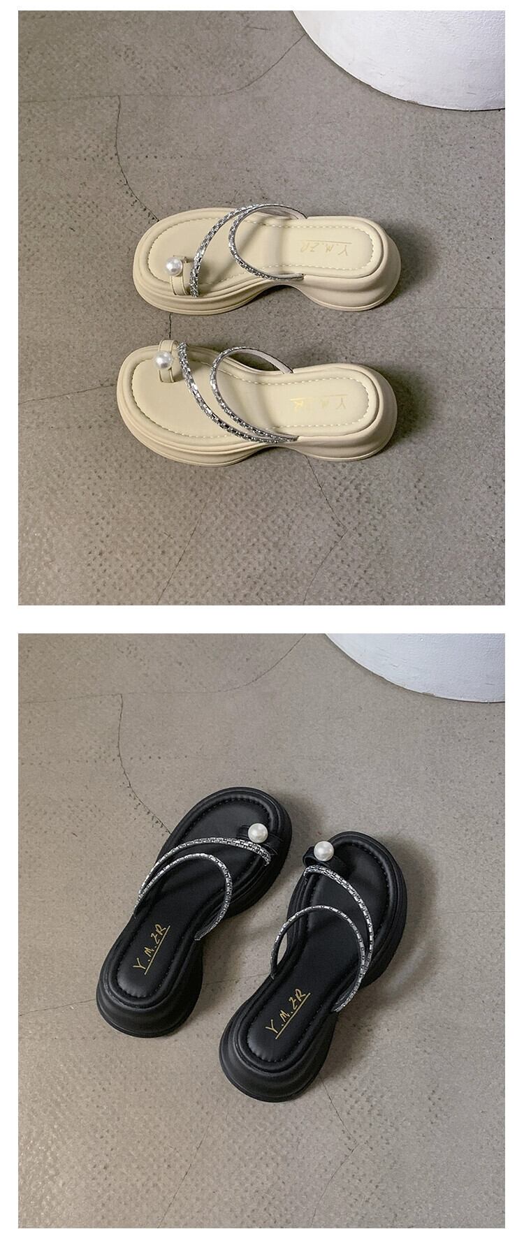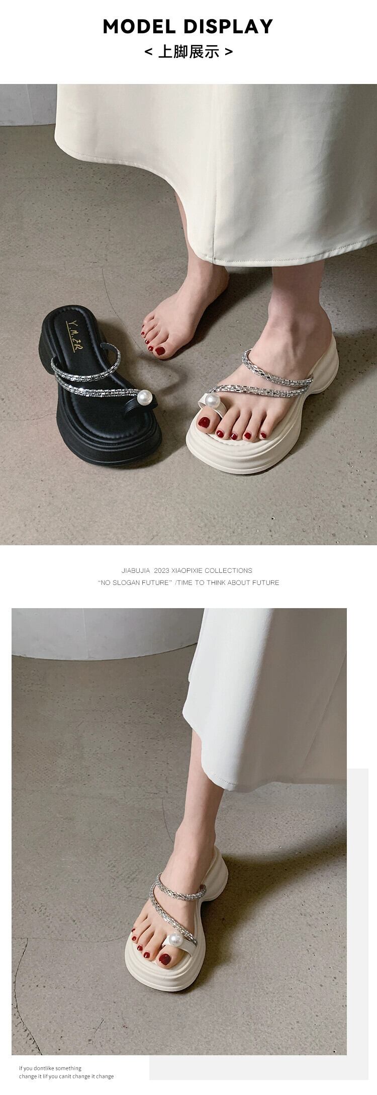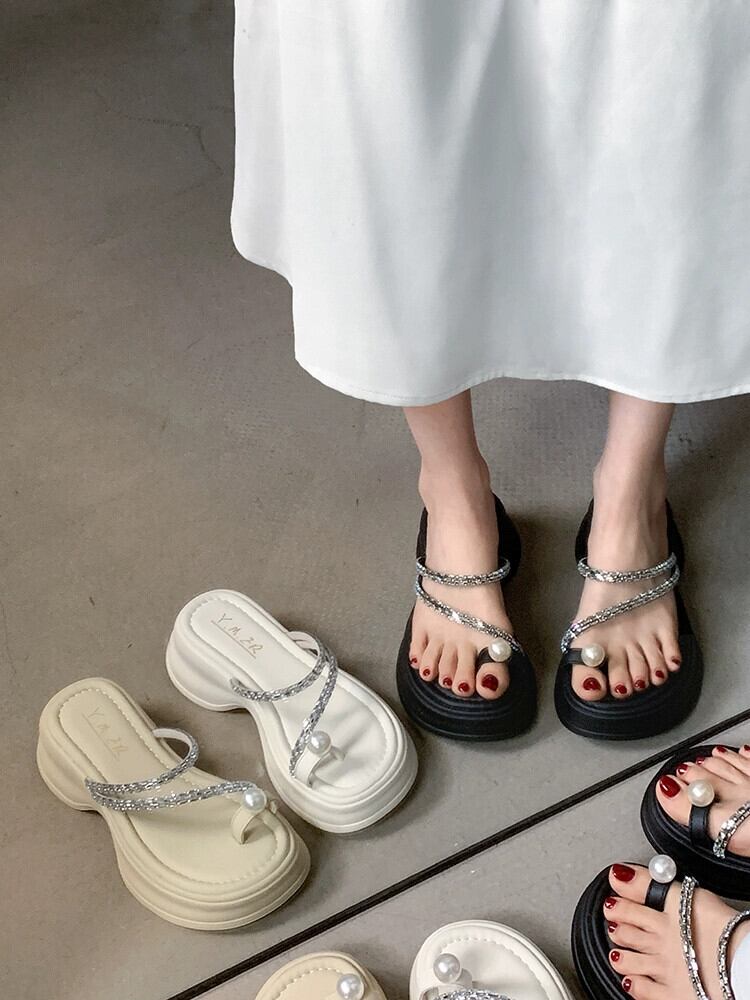 厚いヒールスリッパの女性の 2023 夏の新スタイルフレンチレトロ eign スタイルパールラインストーン妖精サンダルとスリッパトレンド ミュール 靴 シューズ サマー 夏物 真珠 jxjxf74231141238