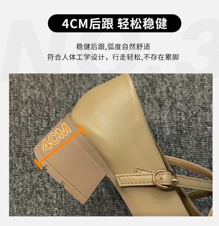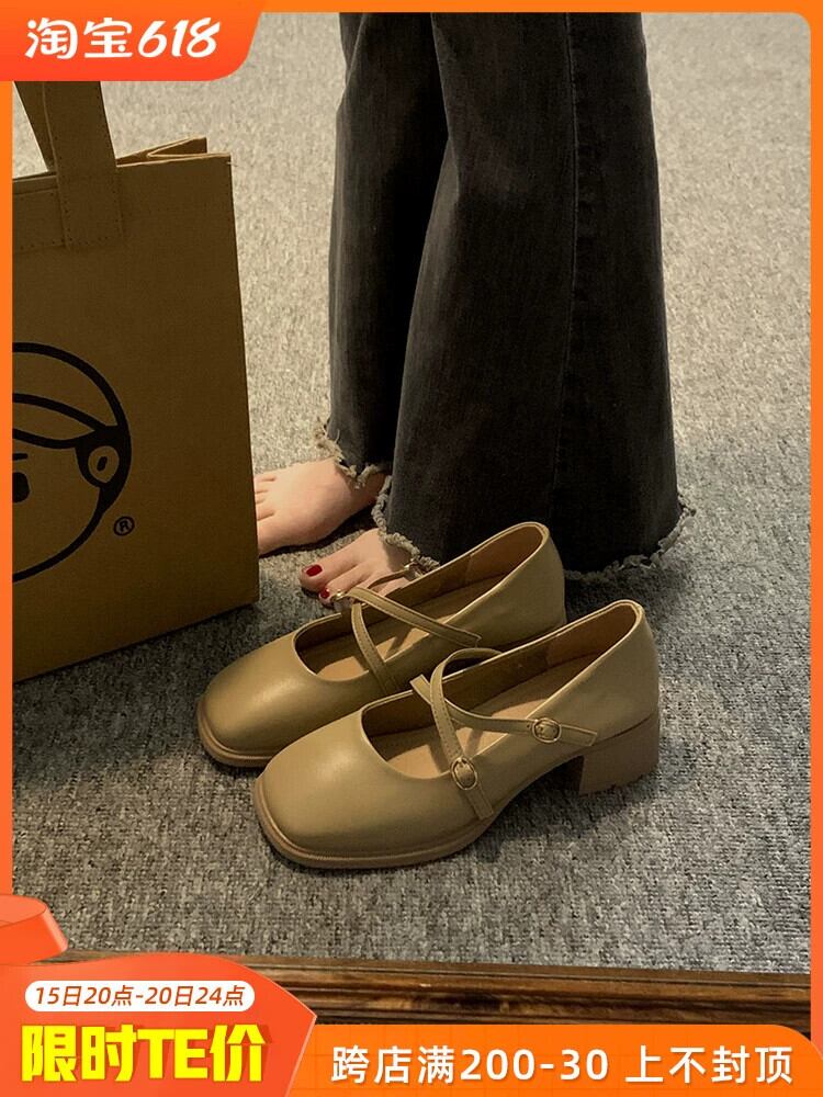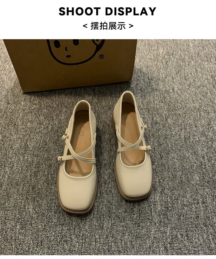 スクエアヘッドシングルシューズ女性の 2023 夏の新レトロクロスバックル小さな厚いヒールノンスリップメリージェーンシューズトレンド 靴 サマー 夏物 スクウェア jxjxf37946351246