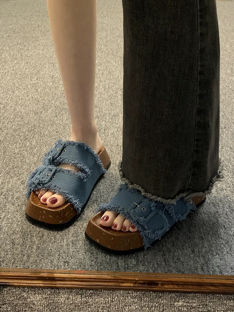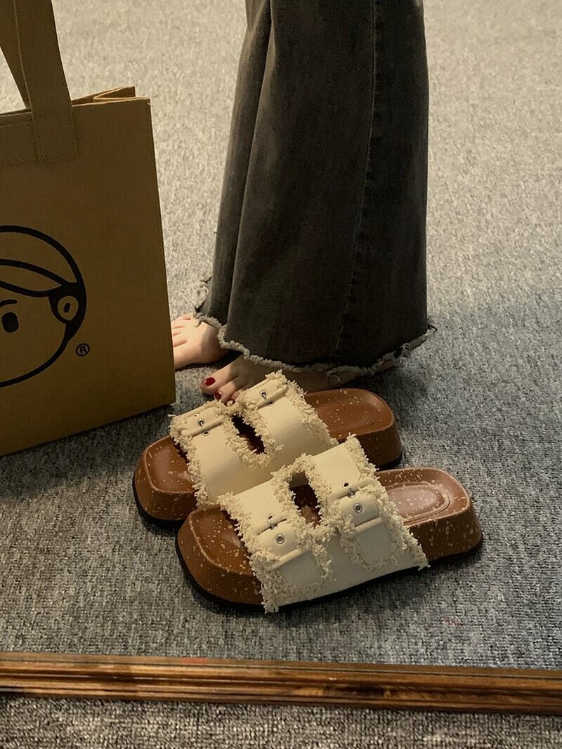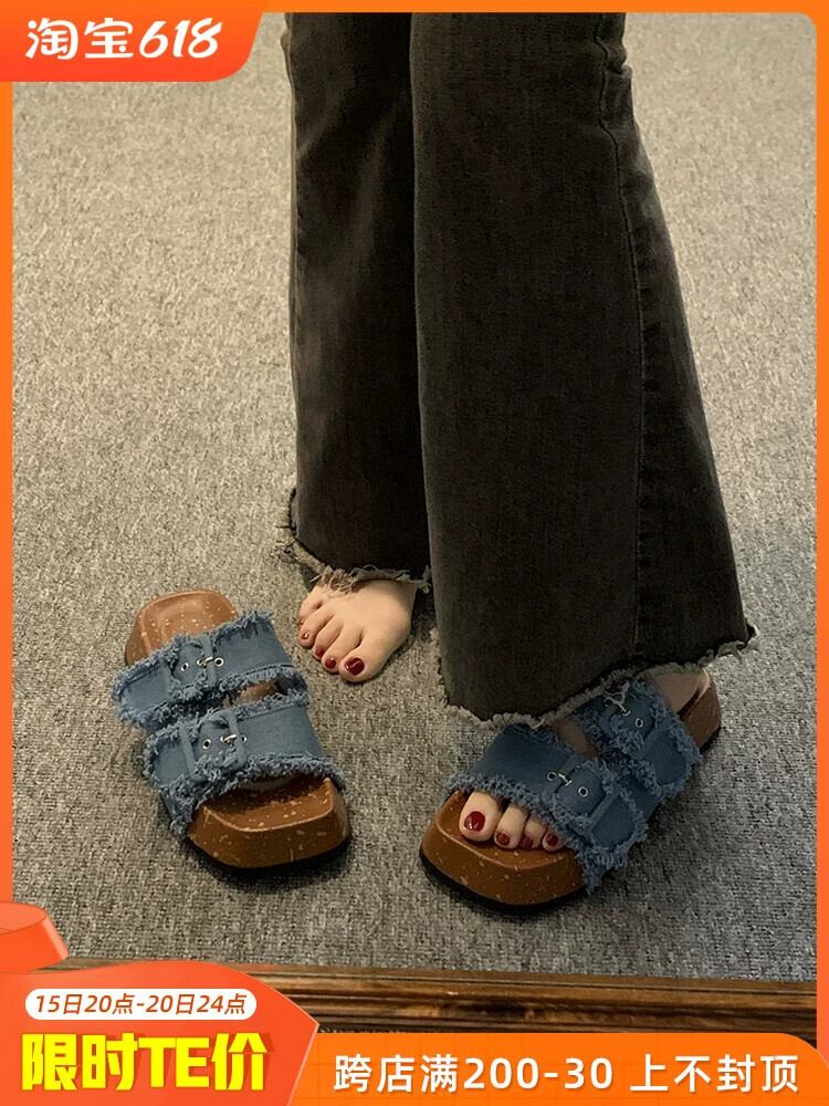 ネット有名人の一言スリッパレディースアウターウェア2023夏の新ファッションオールマッチレトロ厚底カジュアルサンダルとスリッパ ミュール 靴 シューズ サマー 夏物 jxjxf7943415159
