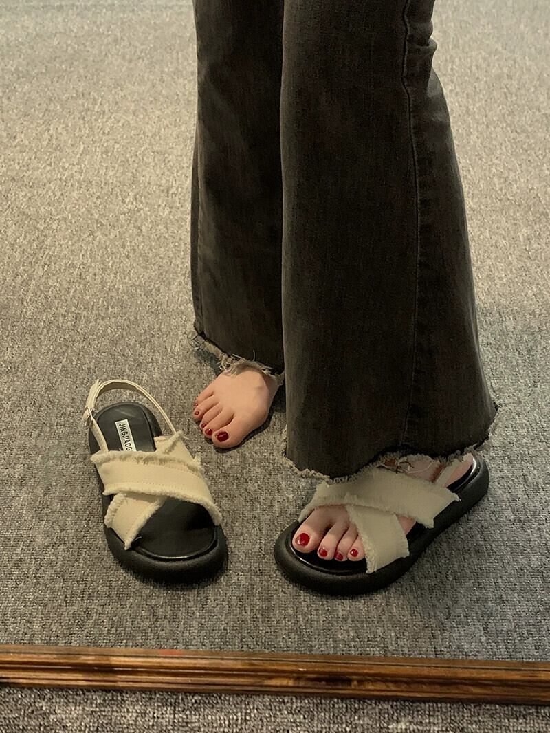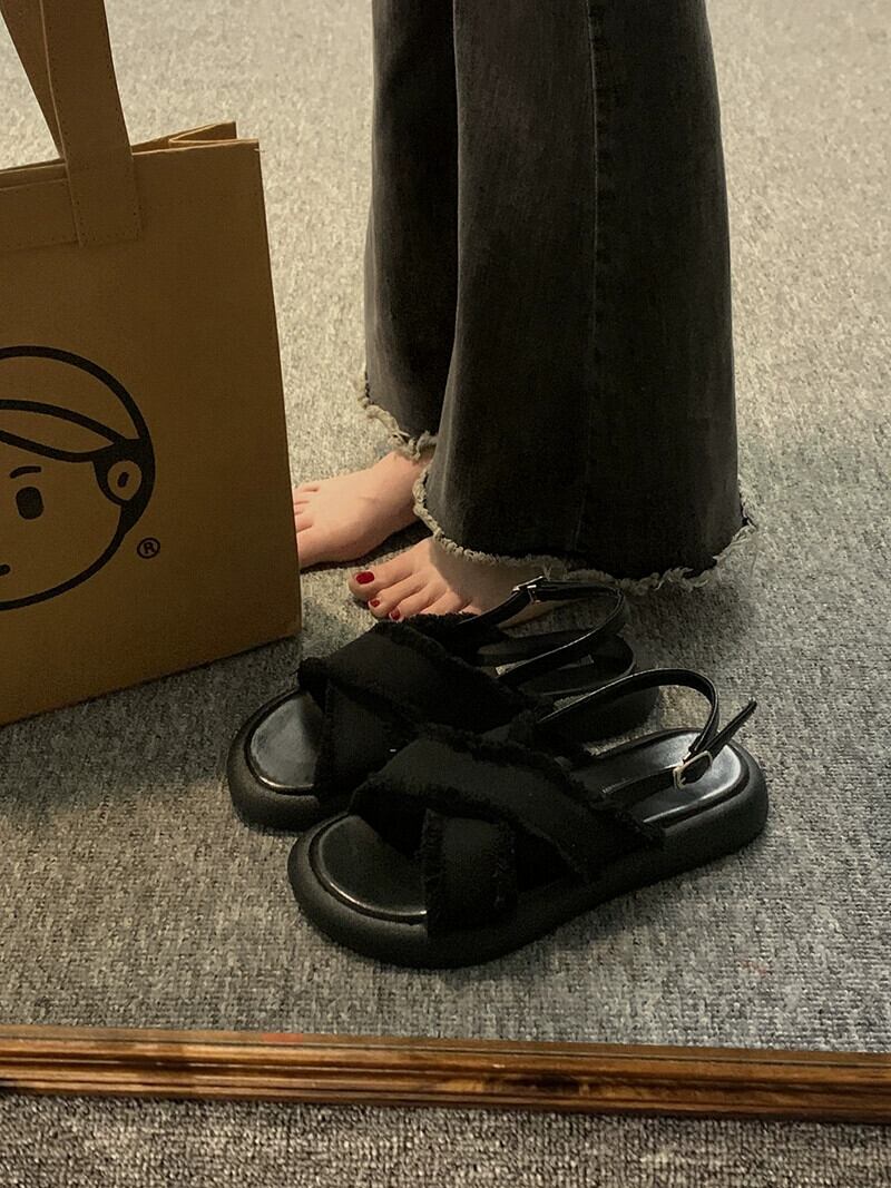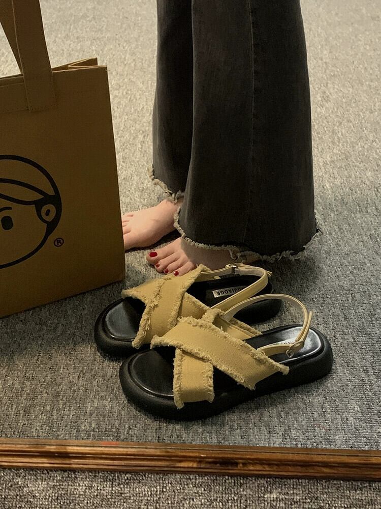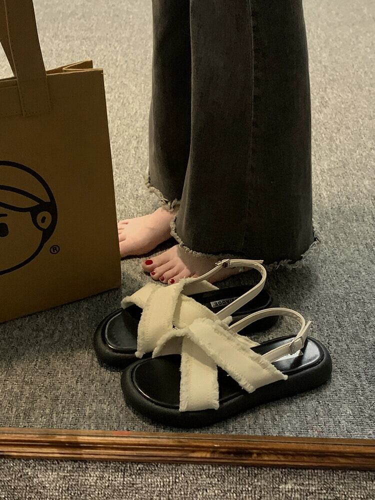 女性のサンダル 2023 夏の新ファッションオールマッチレトロシンプルな eign スタイル comtable カジュアル厚底ビーチシューズ 靴 サマー 夏物 jxjxf62532549158