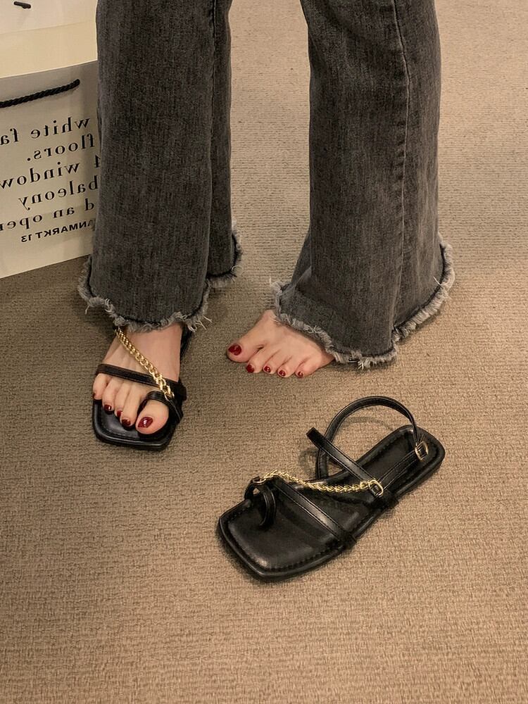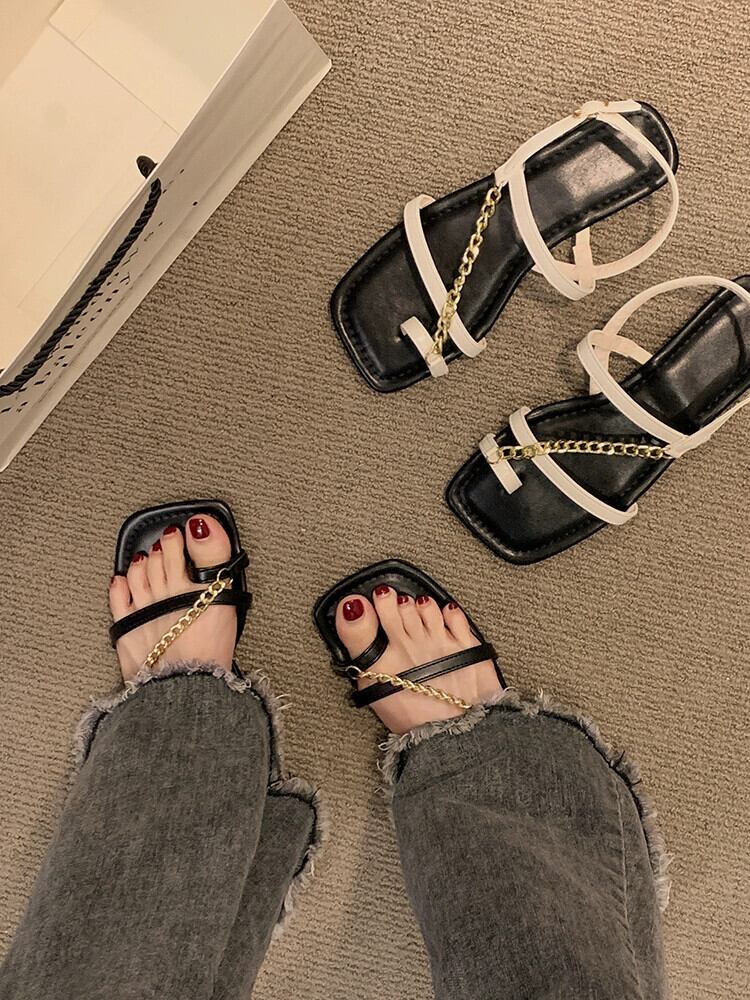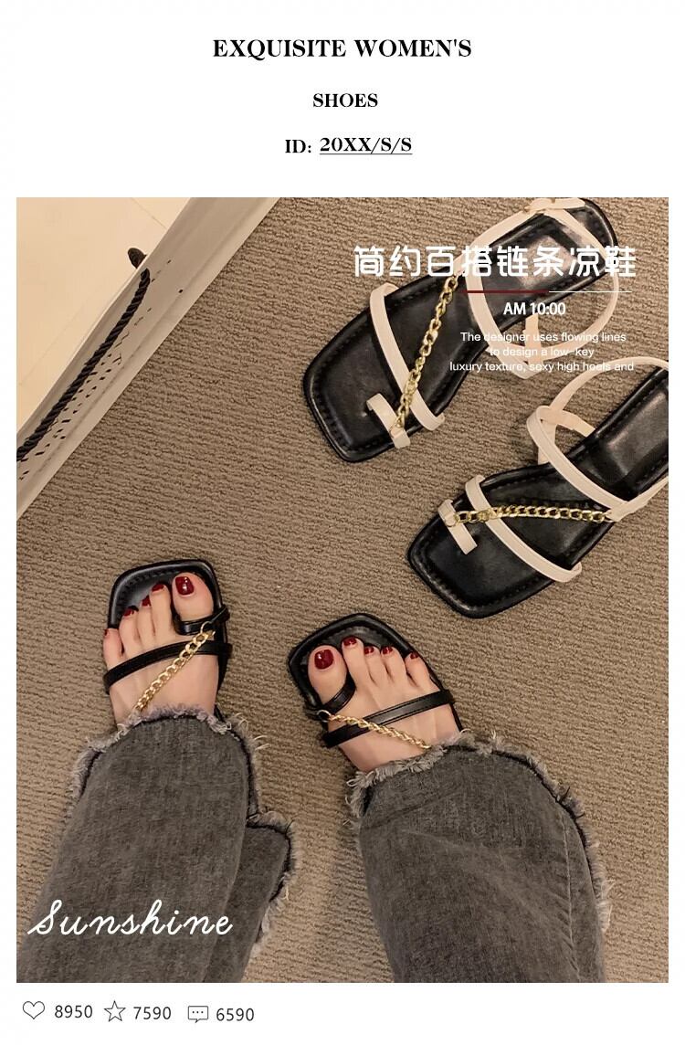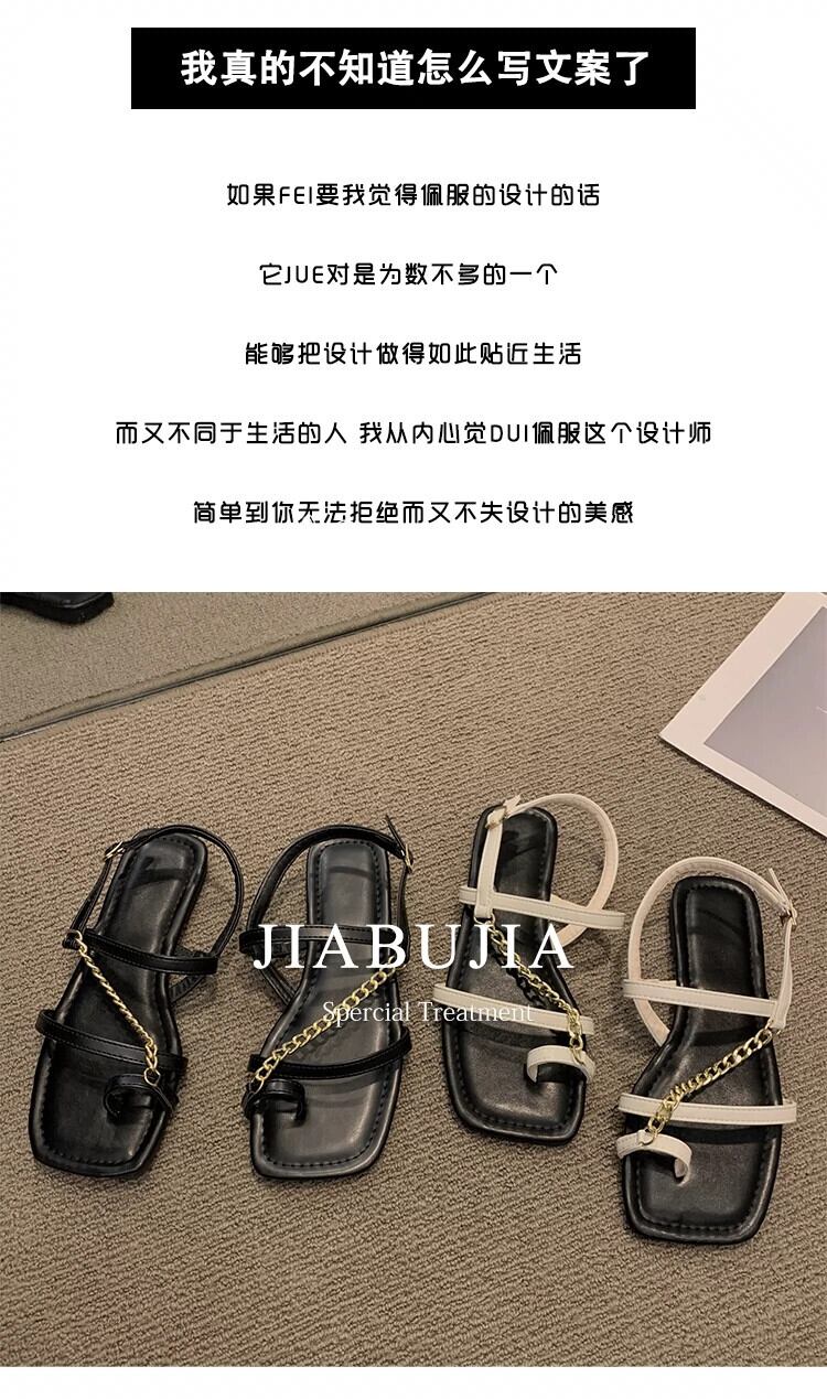 サンダル女性の 2023 夏の新ネットレッドファッション eign スタイルメタルチェーンフラットノンスリップスリップオンつま先ローマンシューズ 靴 サマー 夏物 スリッポン jxjxf47390230631