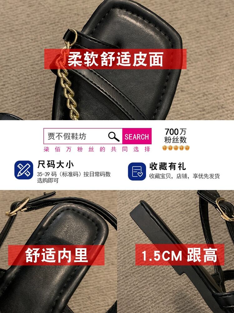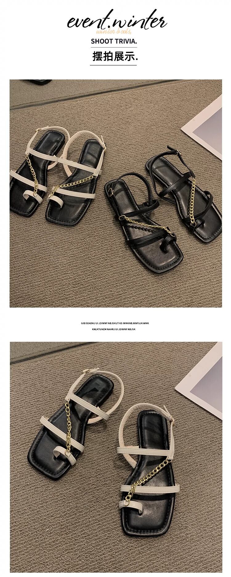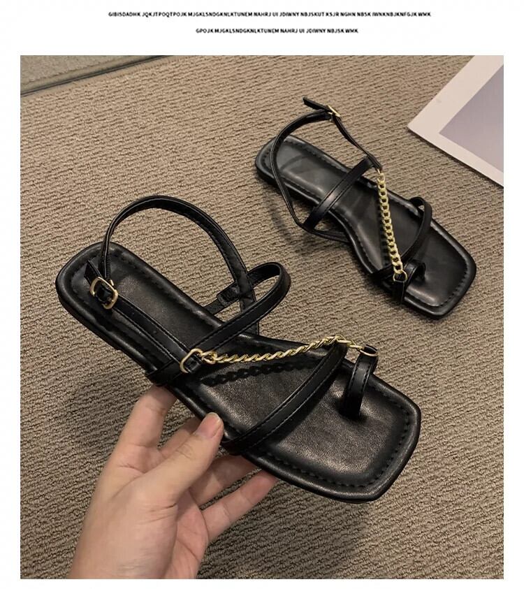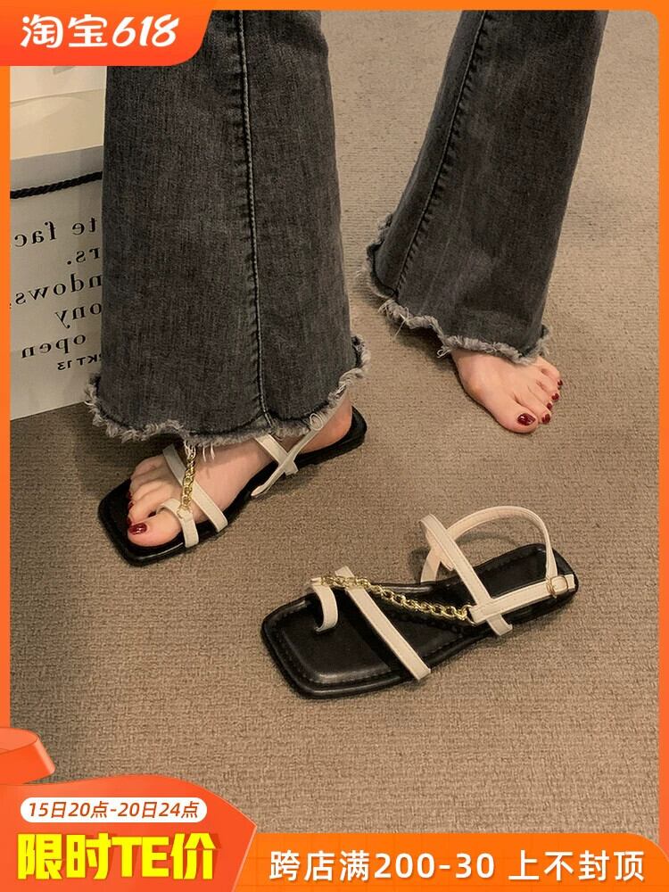 サンダル女性の 2023 夏の新ネットレッドファッション eign スタイルメタルチェーンフラットノンスリップスリップオンつま先ローマンシューズ 靴 サマー 夏物 スリッポン jxjxf47390230631