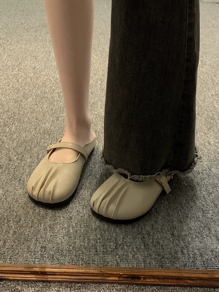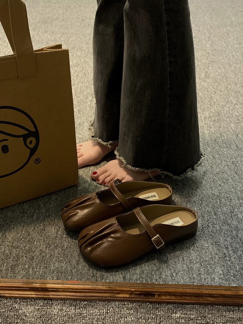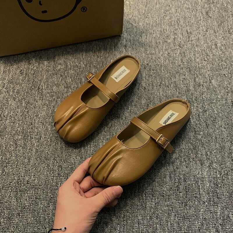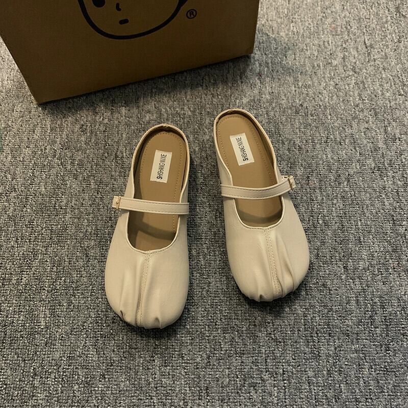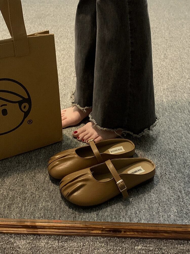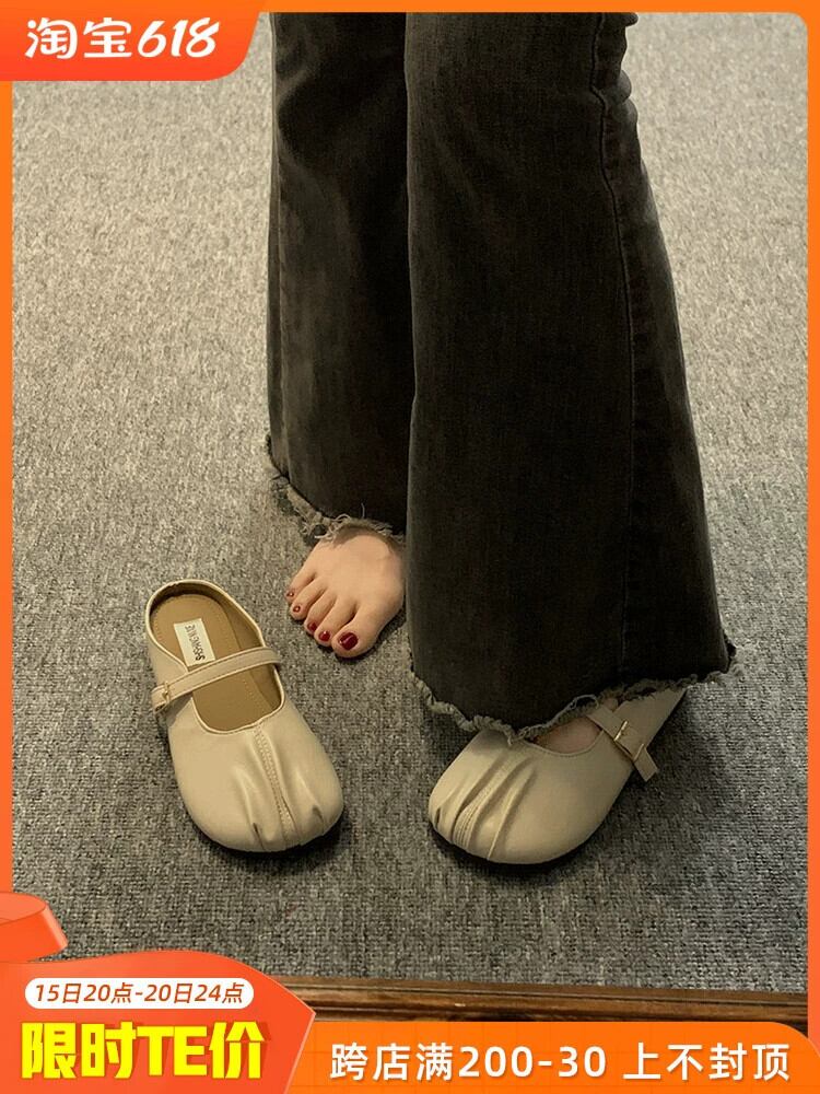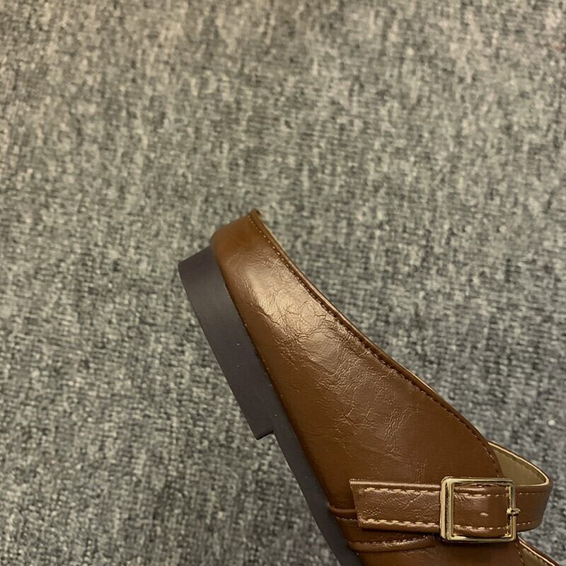 靴女性のハーフドラッグ 2023 夏の新ファッションオールマッチレトロベルトバックルフラット滑り止めアウターウェアサンダルとスリッパ ミュール シューズ サマー 夏物 ハーネス jxjxf77826689926