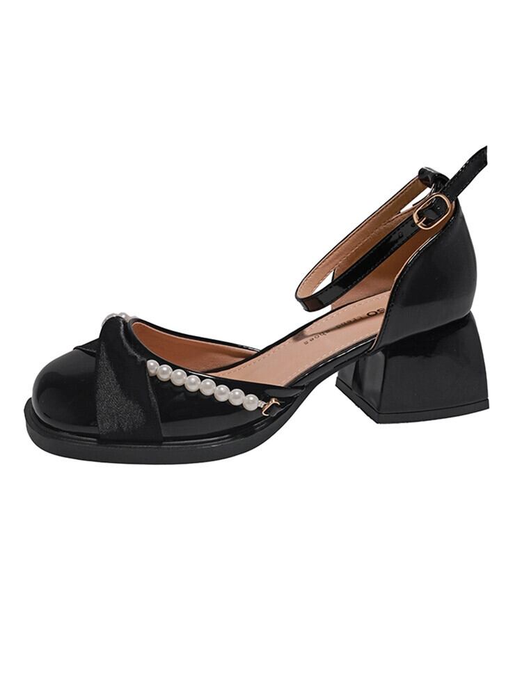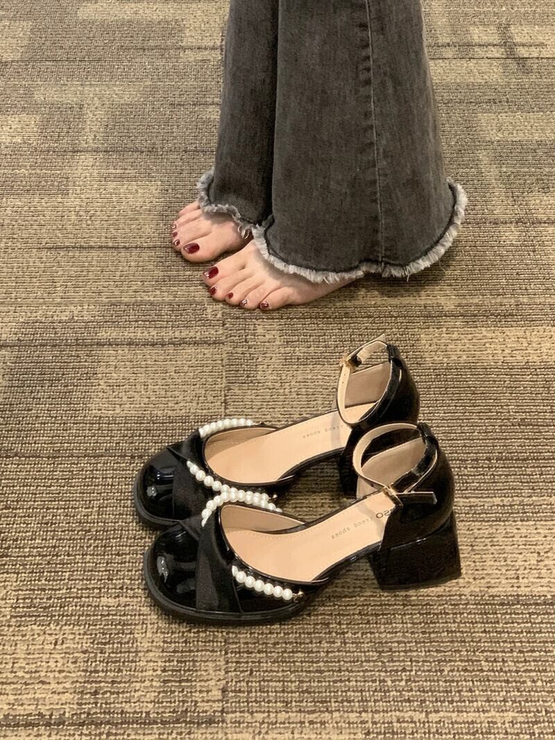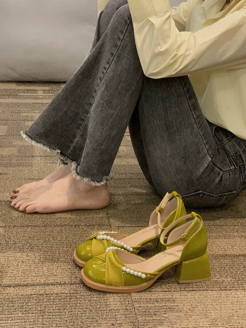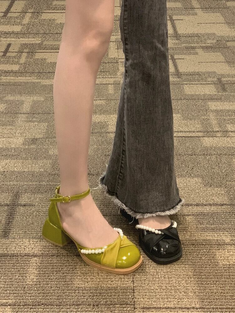 厚底シングルシューズ女性の 2023 春と秋の新ファッションオールマッチレトロフレンチパールメリージェーンハイヒール 靴 スプリング 春物 オータム 秋物 真珠 jxjxf38745013440