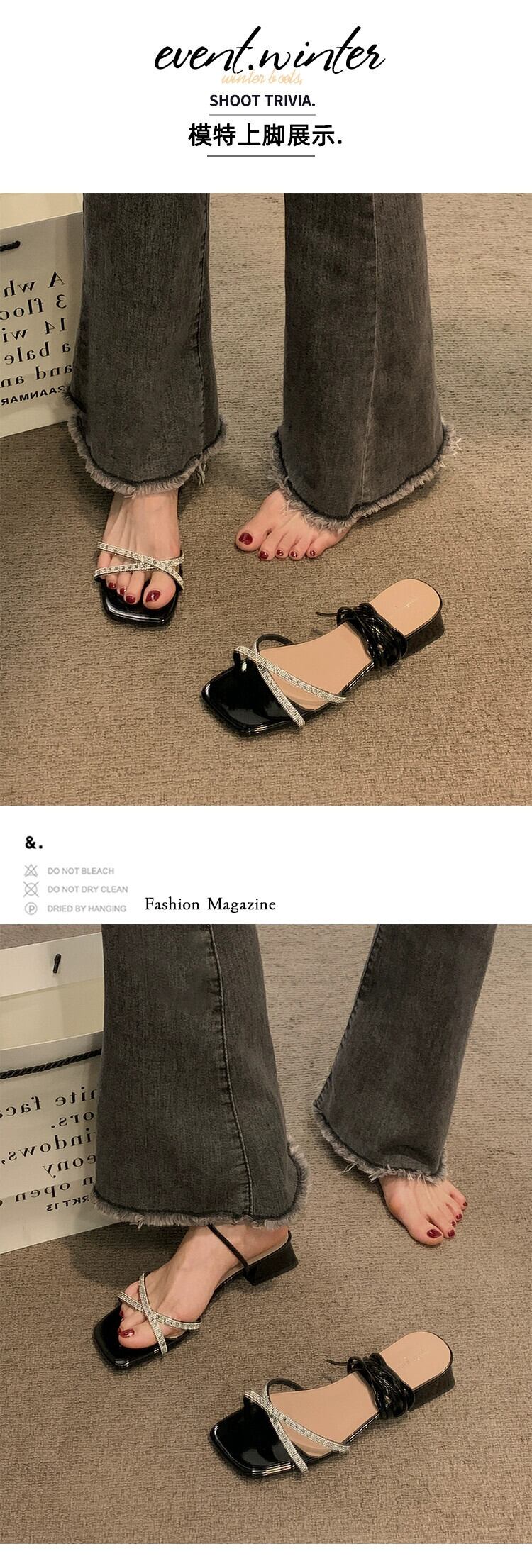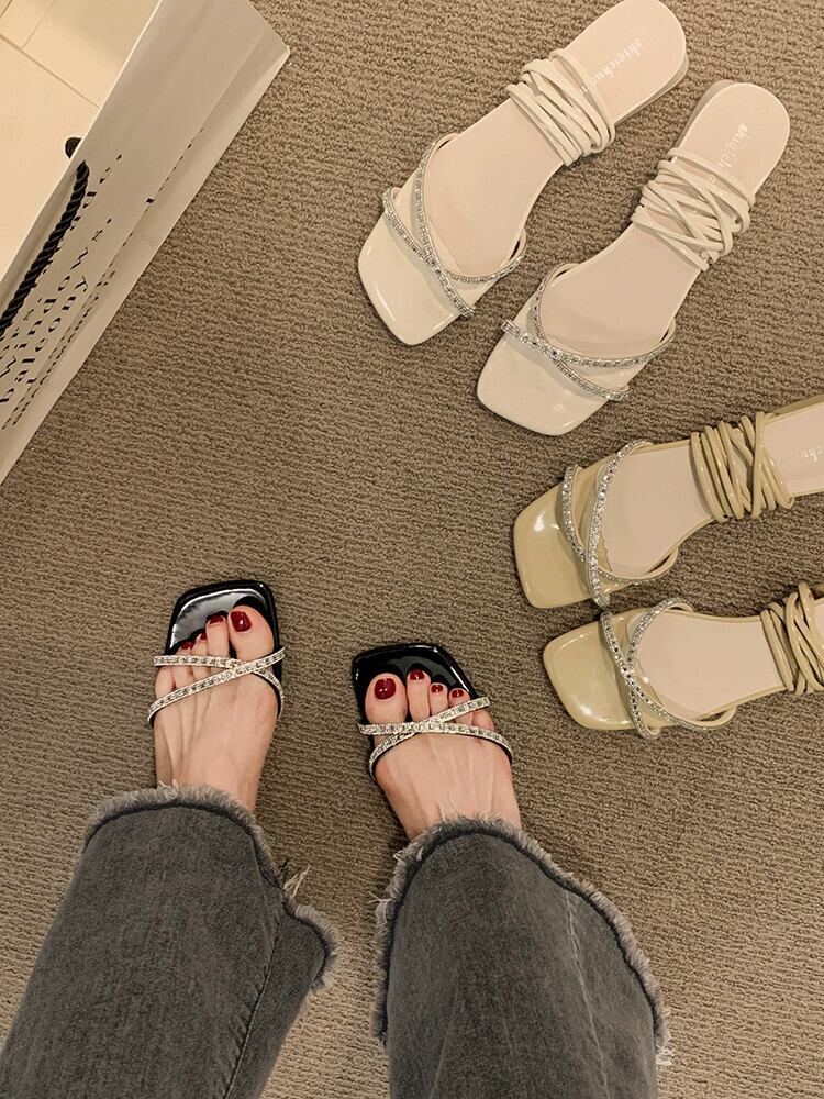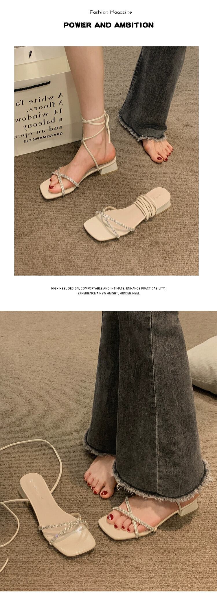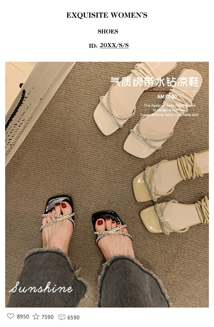 インターネット有名人のローマの靴の女性の 2023 夏の新ファッションラインストーンの妖精フランスの気質軽量厚いヒールサンダルトレンド シューズ サマー 夏物 jxjxf92528577418