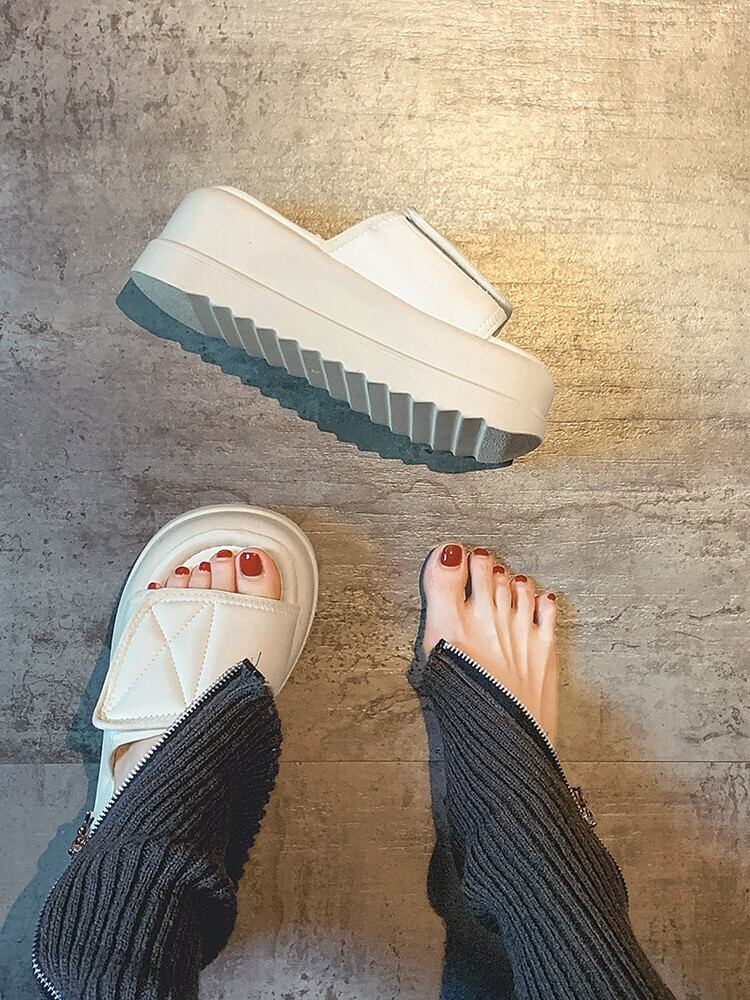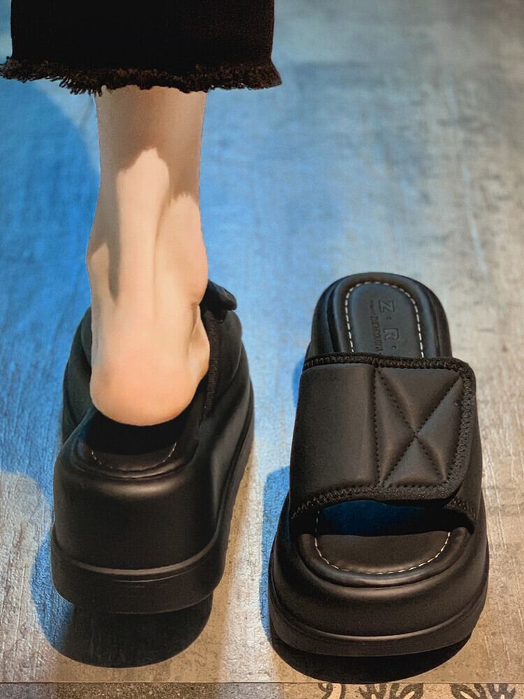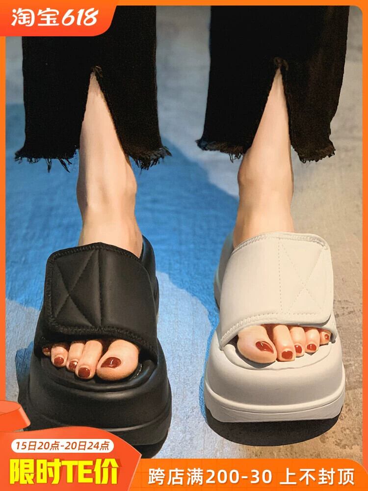 夏一言スリッパレディースアウター 2023 新しいファッションシンプルなレトロマフィン厚底ベルクロサンダルとスリッパ ミュール 靴 シューズ サマー 夏物 jxjxf28732374675