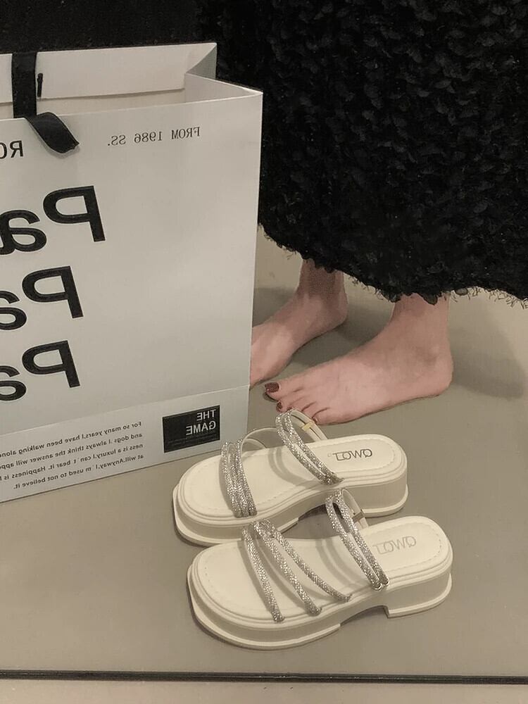 太いヒールスリッパアウターウェア夏の女性の 2023 新しいスーパーファッションオールマッチ気質ラインストーンフランス語サンダル ミュール 靴 シューズ サマー 夏物 jxjxf85761124220