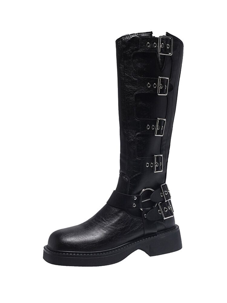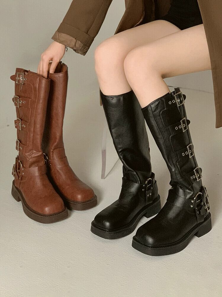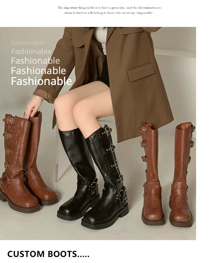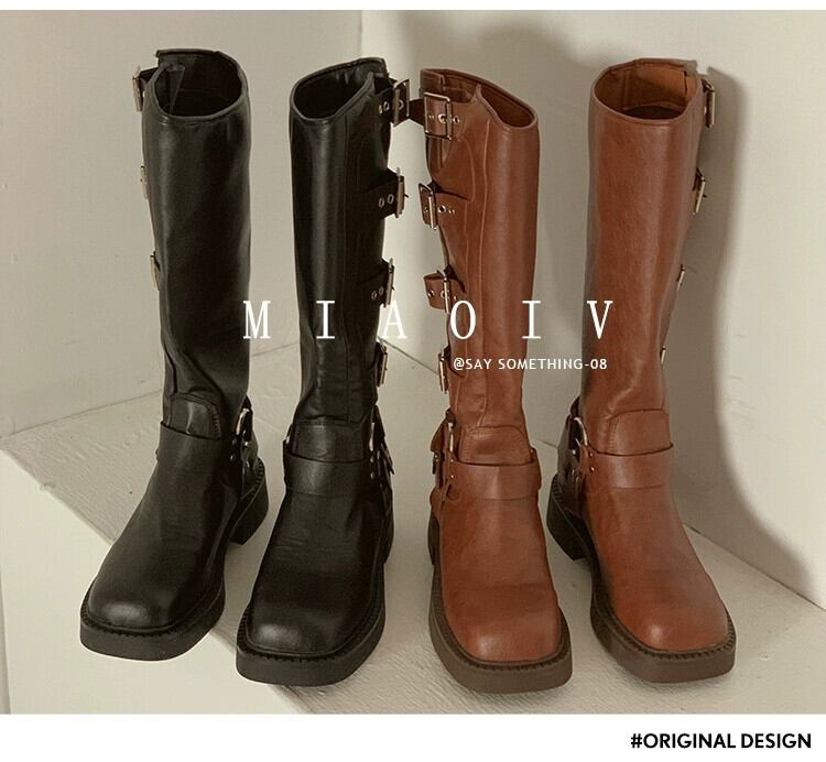 しかし、ニーブーツ 2023 夏の新トレンドファッションレトロベルトバックル厚いヒール滑り止めハンサム薄いブーツ 靴 シューズ サマー 夏物 ハーネス jxjxf48054960799