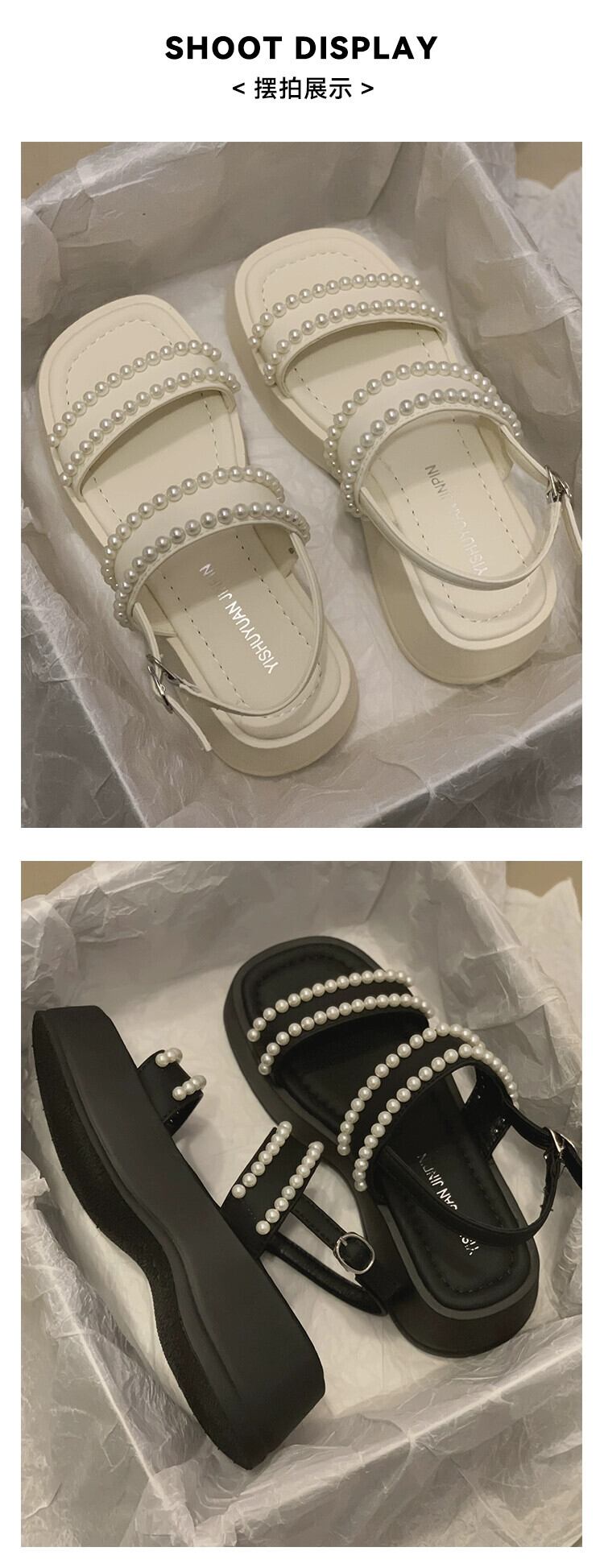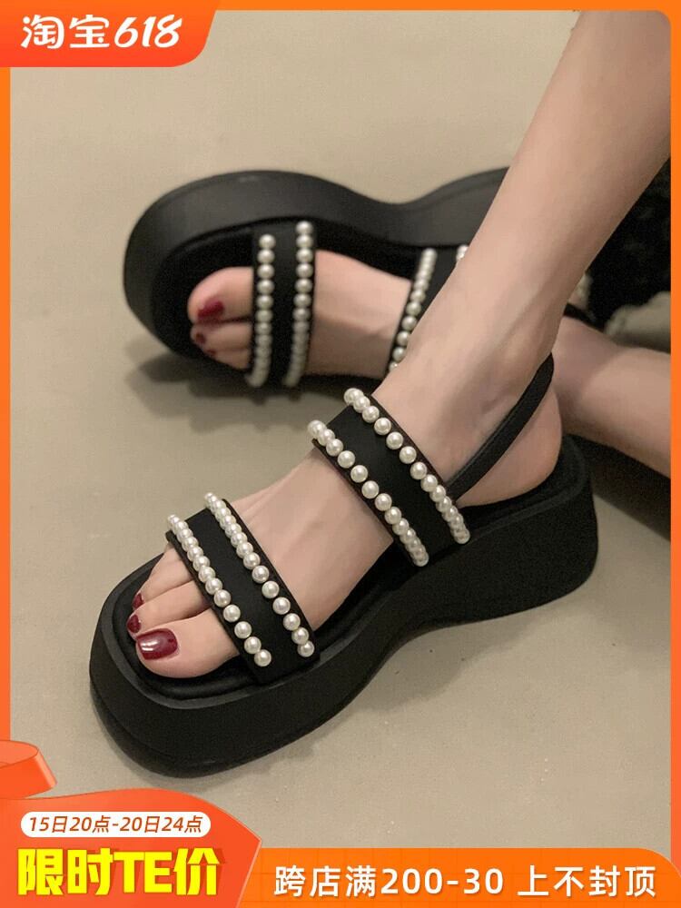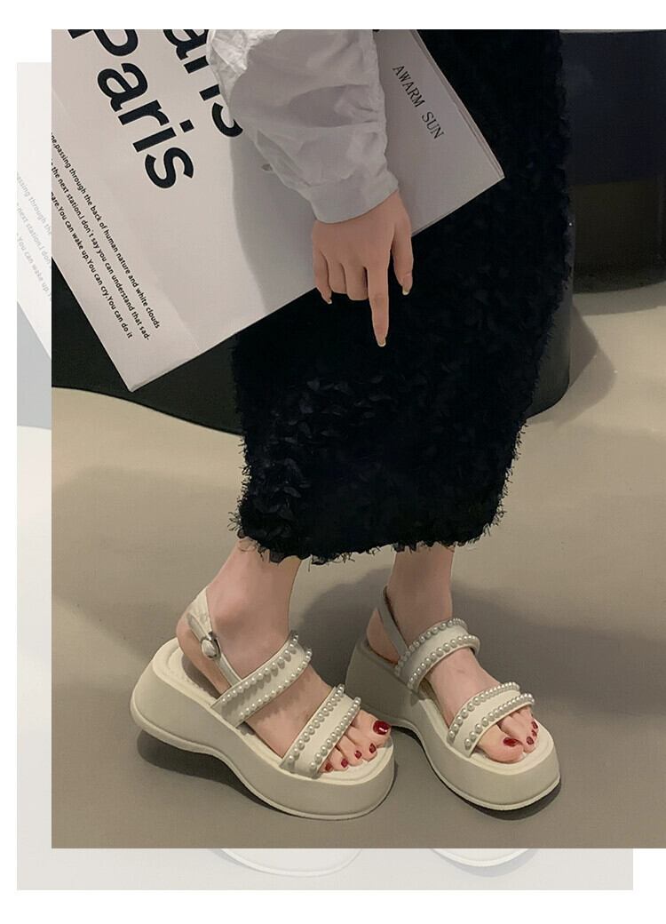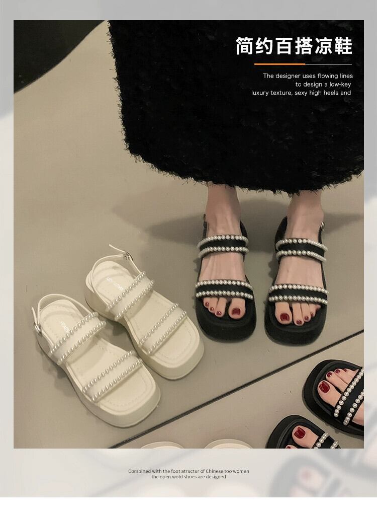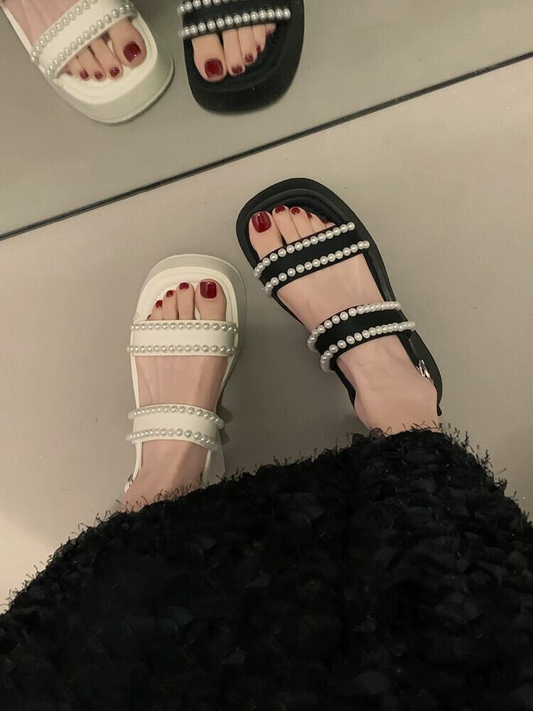 女性のサンダル夏スタイル 2023 新しいネットレッドファッションレトロパール小さな厚底ノンスリップアインスタイルビーチシューズ 靴 サマー 夏物 真珠 jxjxf55878071286