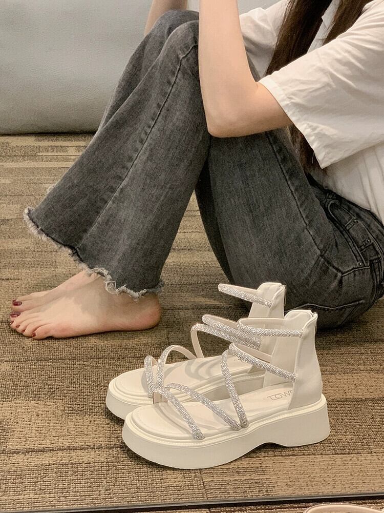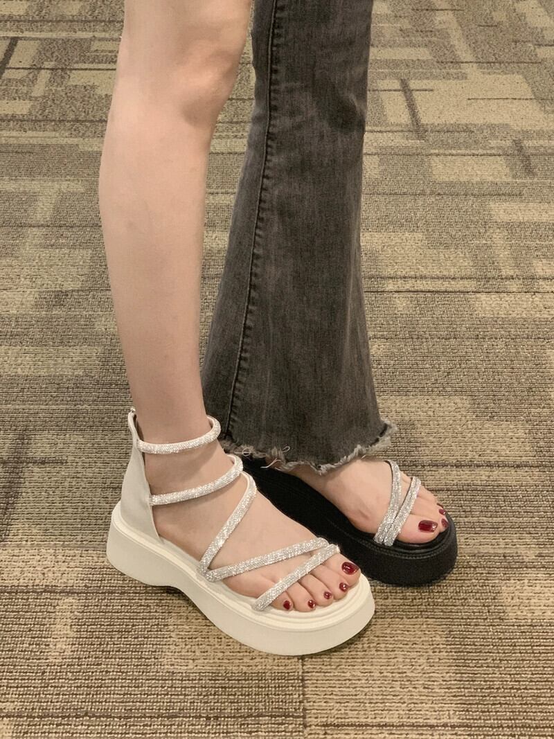 美しい厚底サンダルレディース 2023 夏の新作ファッションオールマッチ妖精ラインストーンシンプルで優しいビーチサンダル潮 靴 シューズ サマー 夏物 jxjxf72535253332