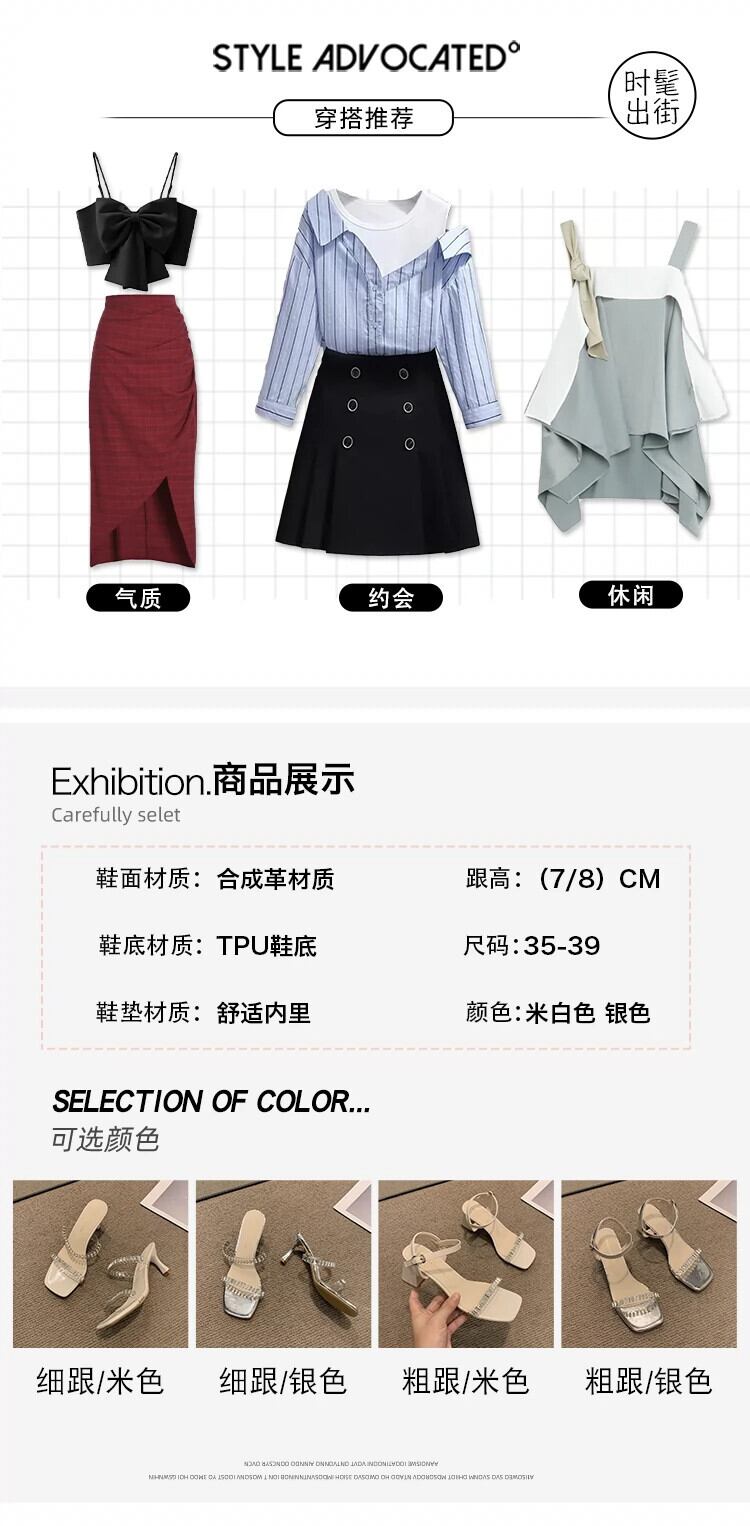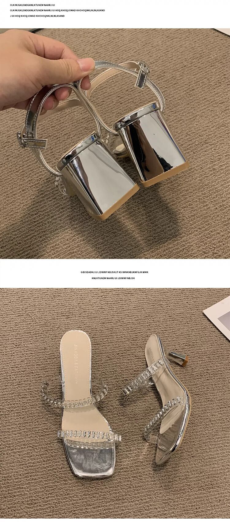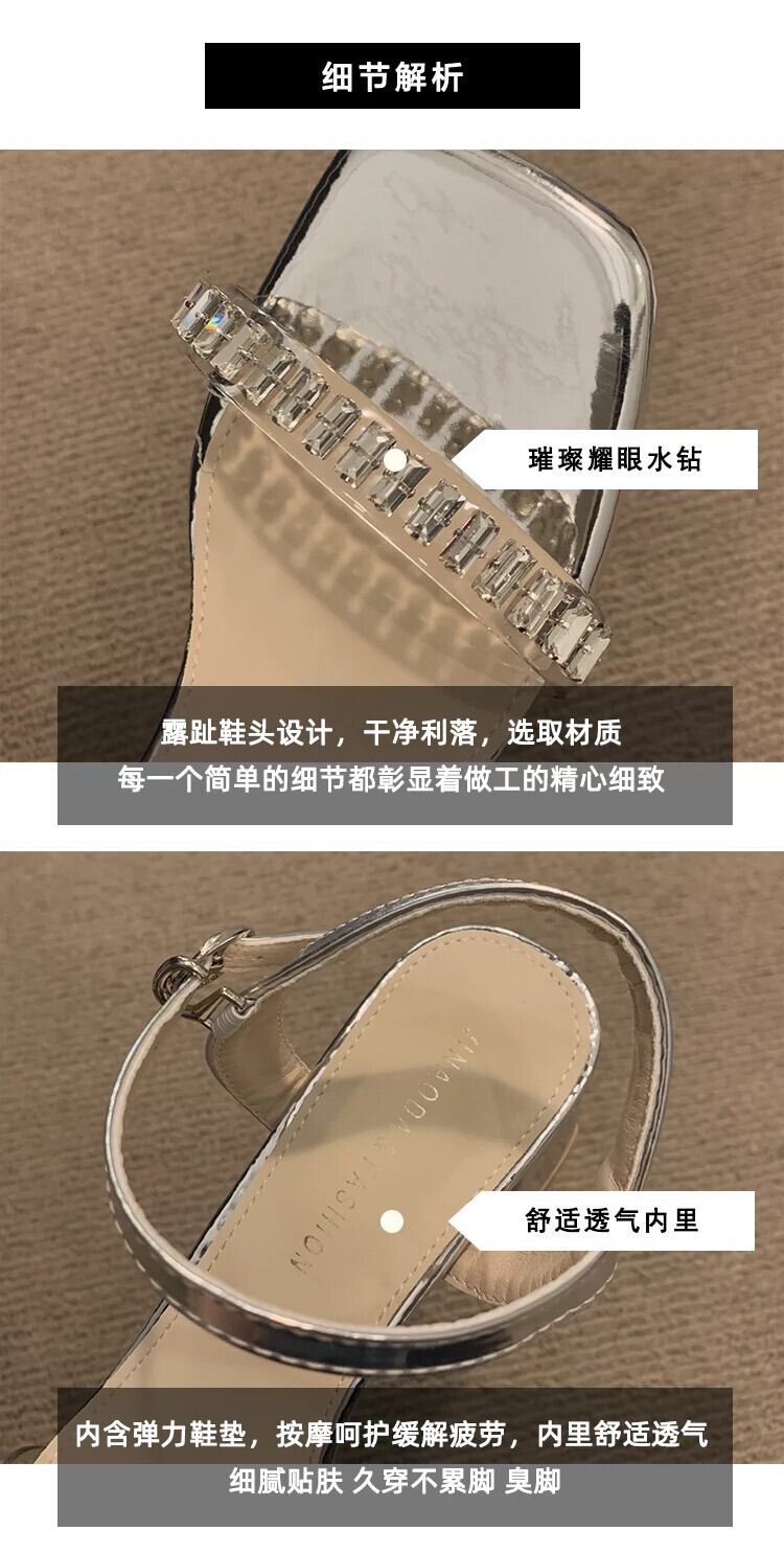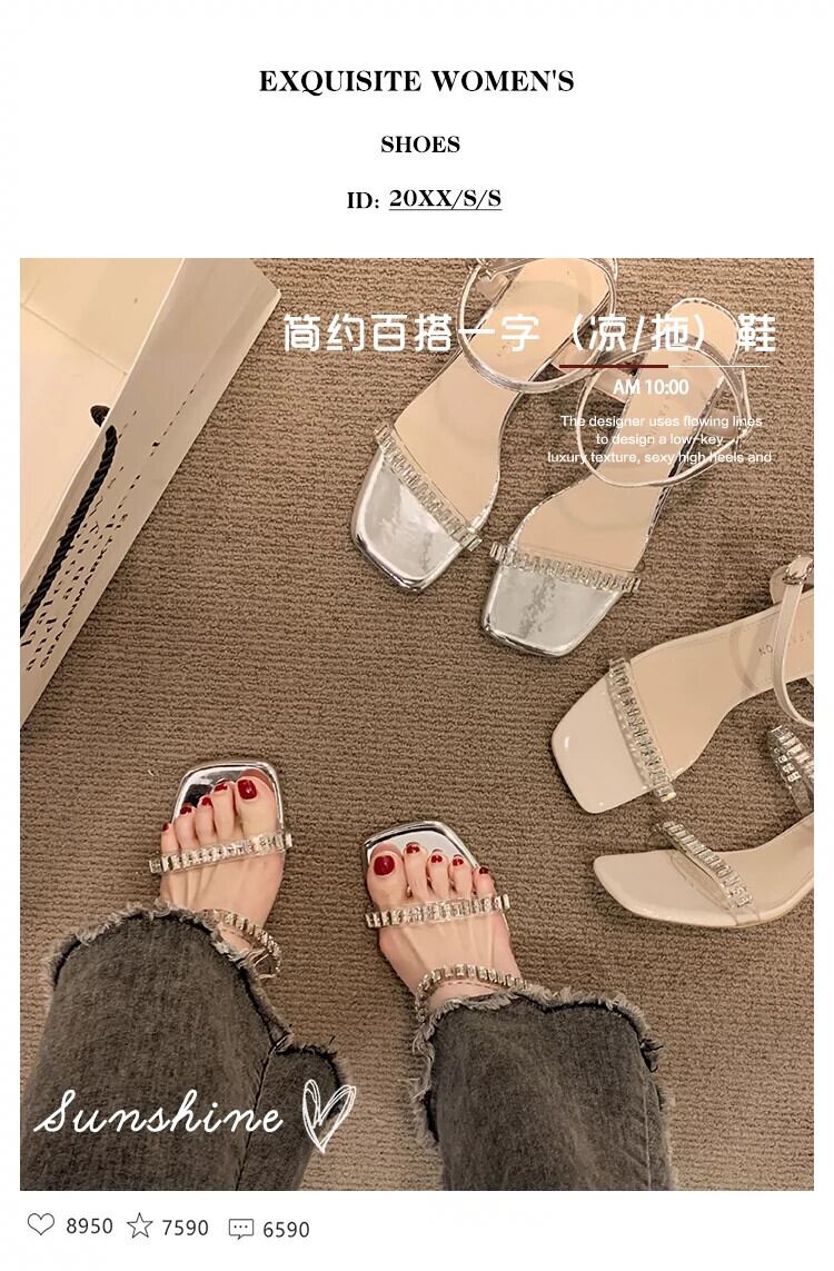 厚いヒールサンダルの女性の 2023 夏の新ファッションラインストーン気質フレンチレトロハイヒールトレンド 靴 シューズ サマー 夏物 jxjxf81752531721