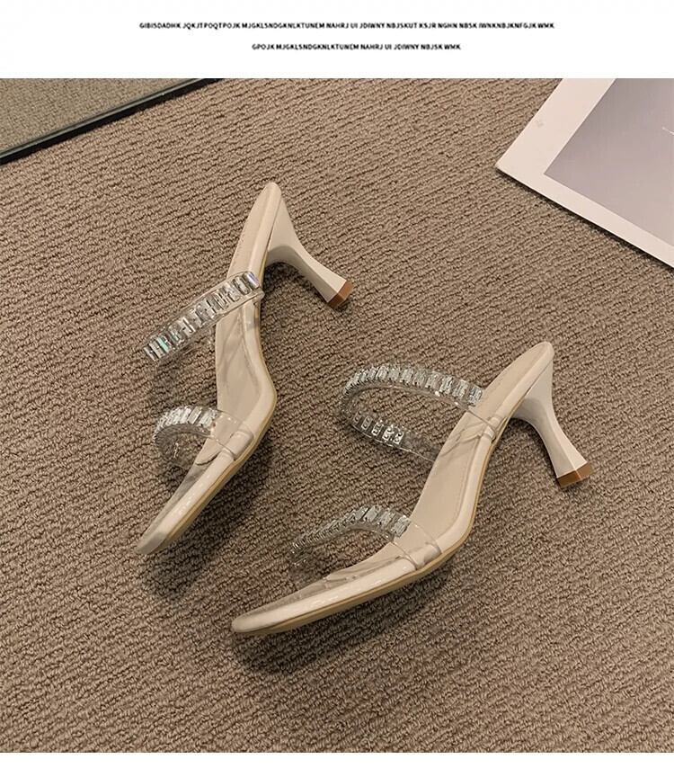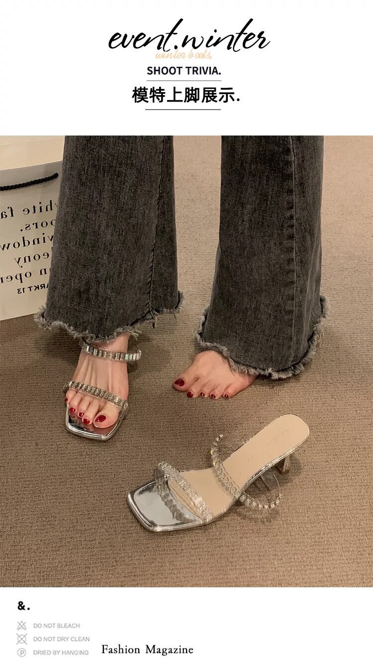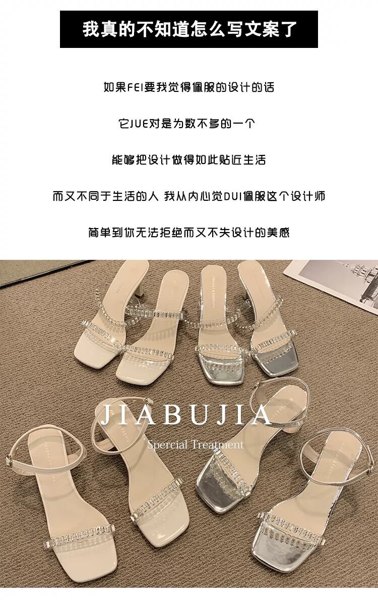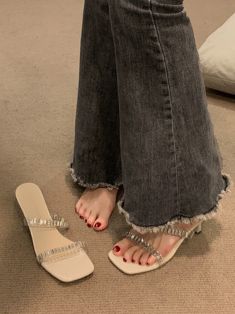 厚いヒールサンダルの女性の 2023 夏の新ファッションラインストーン気質フレンチレトロハイヒールトレンド 靴 シューズ サマー 夏物 jxjxf81752531721